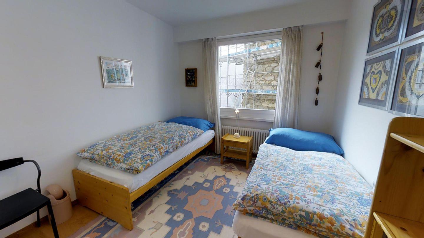 4-½-Zimmerwohnung im 3. Stock, ca. 105 m2. Grosszügiges Wohnzimmer, TV/DVD/Video/Tel./Internet, offene Küche mit Backofen, Nespresso Kaffeemaschine, Geschirrspüler, Kühlschrank mit gr. Tiefkühlfach, Essecken, Gäste-WC /Lavabo, 1 Doppelzimmer + Rundbalkon, Dusche/Bidet/Lavabo/WC, 1 2-Bettzimmer, 1 Doppelzimmer mit Rundbalkon, Bad/WC/Lavabo. Waschküche und Skiraum zur Mitbenützung. Garagenplatz im öffentlichen Parkhaus, ganz in der Nähe. Haustiere sind nicht erlaubt.