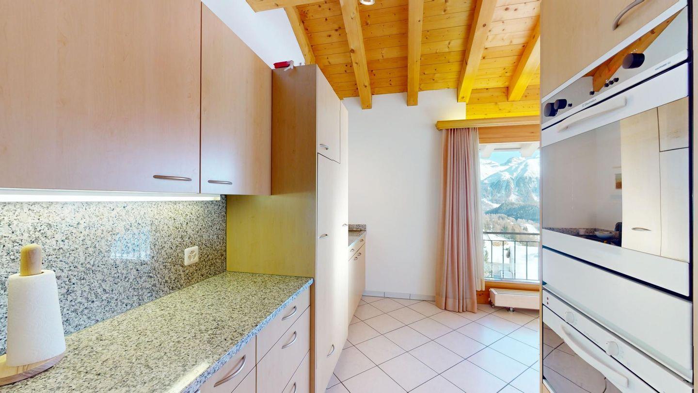 Diese exklusive 2.5-Zimmer-Wohnung im Engadiner Stil bietet eine perfekte Kombination von Komfort und einer spektakulären Aussicht auf die Engadiner Berge und das Tal. Die Wohnung verfügt über ein Wohn- /Esszimmer, eine gut ausgestattete offene Küche und einen Balkon mit fantastischer Weitsicht. 1 Doppelschlafzimmer. 1 Badezimmer/Dusche/WC. Kamin und 1 Aussenparkplatz. Im Erdgeschoss gibt es ein Spielzimmer mit TV und eine Waschmaschine/Trockner zur gemeinsamen Nutzung.