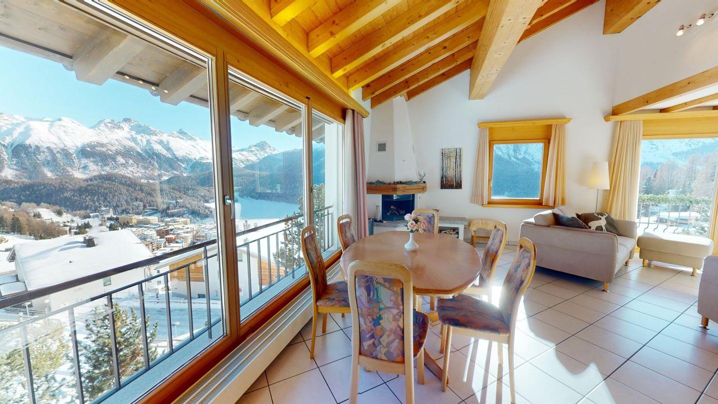 Exklusives Ferienhaus an erstklassiger Aussichtslage oberhalb von St. Moritz-Dorf. Diese herausragende Ferienwohnung befindet sich in einer ruhigen und exklusiven Wohngegend und bietet eine einmalige Hanglage mit spektakulärem Blick auf St. Moritz, den See sowie die umliegenden Berge. 4 Autominuten zu erstklassigen Restaurants, eleganten Boutiquen und vielfältigen Sportmöglichkeiten ist dieses Domizil der ideale Ausgangspunkt. Geniessen Sie während Ihren Ferien auch mit Ihrer Familie die perfekte Kombination aus idyllischer Ruhe und urbanem Komfort.