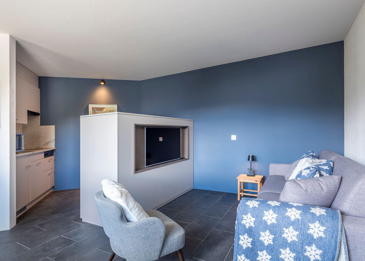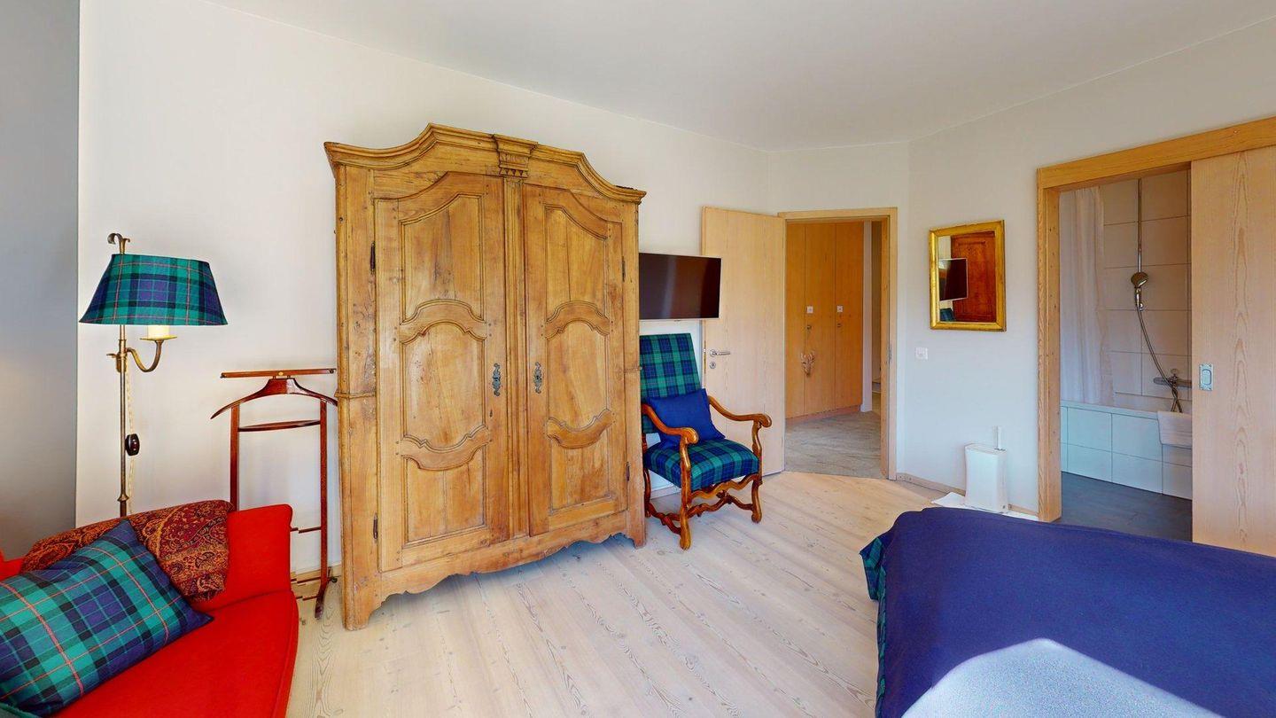 Das grosszügige, lichtdurchflutete Wohn- und Esszimmer bietet einen atemberaubenden Ausblick auf die Engadiner Bergwelt und öffnet sich zu einem sonnigen Balkon – der perfekte Ort, um entspannte Stunden zu geniessen. Die geschlossene, modern ausgestattete Küche lädt zu kulinarischen Momenten ein und ist bestens ausgestattet.