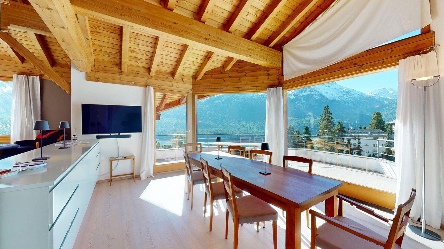 Exklusives Ferienhaus "Tashi Deleg" an erstklassiger Aussichtslage oberhalb von St. Moritz. Diese herausragende Ferienliegenschaft befindet sich in einer ruhigen und exklusiven Wohngegend und bietet eine einmalige Hanglage mit spektakulärem Blick auf St. Moritz, den St. Moritzersee sowie die umliegende Berglandschaft. Nur wenige Schritte von St. Moritz-Dorf entfernt, wo Restaurants und Boutiquen zum Verweilen einladen, bietet dieses Objekt den idealen Ausgangspunkt für unvergessliche Tage. Die Chantarellabahn, welche Sie direkt ins Ski- und Bikeparadies Corviglia bringt, erreichen Sie in nur vier Gehminuten.