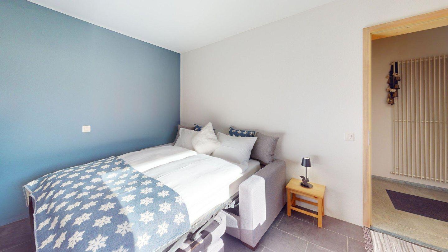 Die stilvolle Einliegerwohnung verfügt über ein hochwertiges Schlafsofa, eine separate Küche sowie ein eigenes Badezimmer – ideal für Gäste oder als zusätzlicher Rückzugsbereich. Zwei Tiefgaragenplätze ( Breite: 2.35 Meter, Höhe: 2.05 Meter) runden das Angebot ab und gewährleisten einen sorgenfreien Aufenthalt.