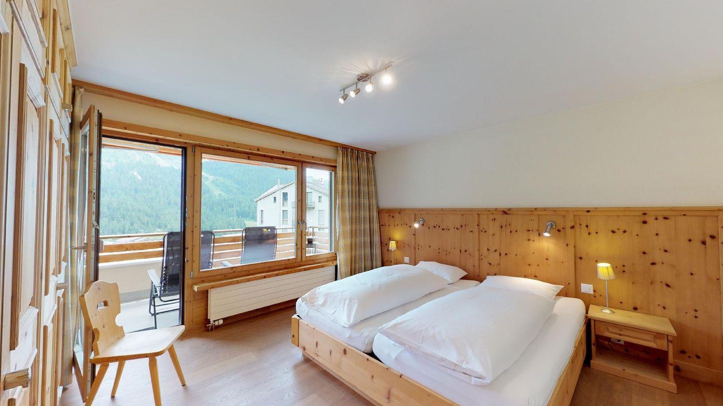 Die 4- Zimmer Ferienwohnung ist sehr stilvoll und hochwertig mit einheimischem Arvenholz und Naturstein eingerichtet. Grosszügiges Wohn- /Esszimmer mit Kamin, Südbalkon. Moderne, gut ausgestattete Küche mit Backofen, 1 Doppelschlafzimmer mit Bad/DU. 2 Schlafzimmer mit je 2 separaten Betten. 1 DU/WC. Waschmaschine, Tumbler zur Mitbenützung. Parkplatz.