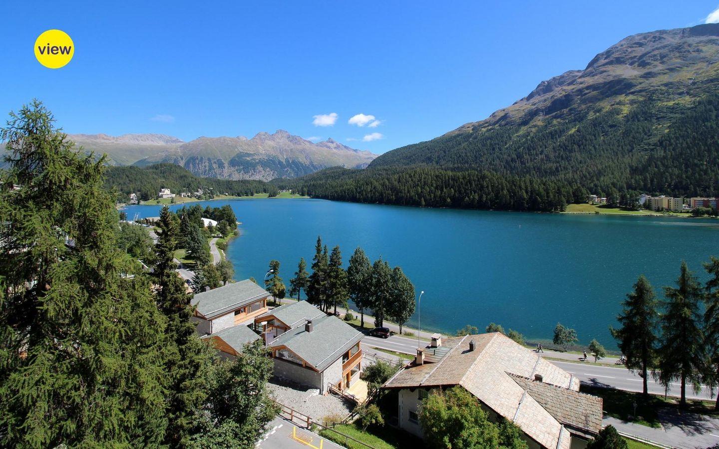 Terrassenförmiges Ferienhaus zwischen St. Moritz-Dorf und Bad. Bequeme Lage mit perfektem Seeblick. 5 Gehminuten von St.Moritz - Dorf sowie Bad. Einkaufsmöglichkeiten und Bushaltestelle in unmittelbarer Nähe. Gönnen Sie sich Ihren Urlaub auf dem Adlerhorst über dem St. Moritzersee.