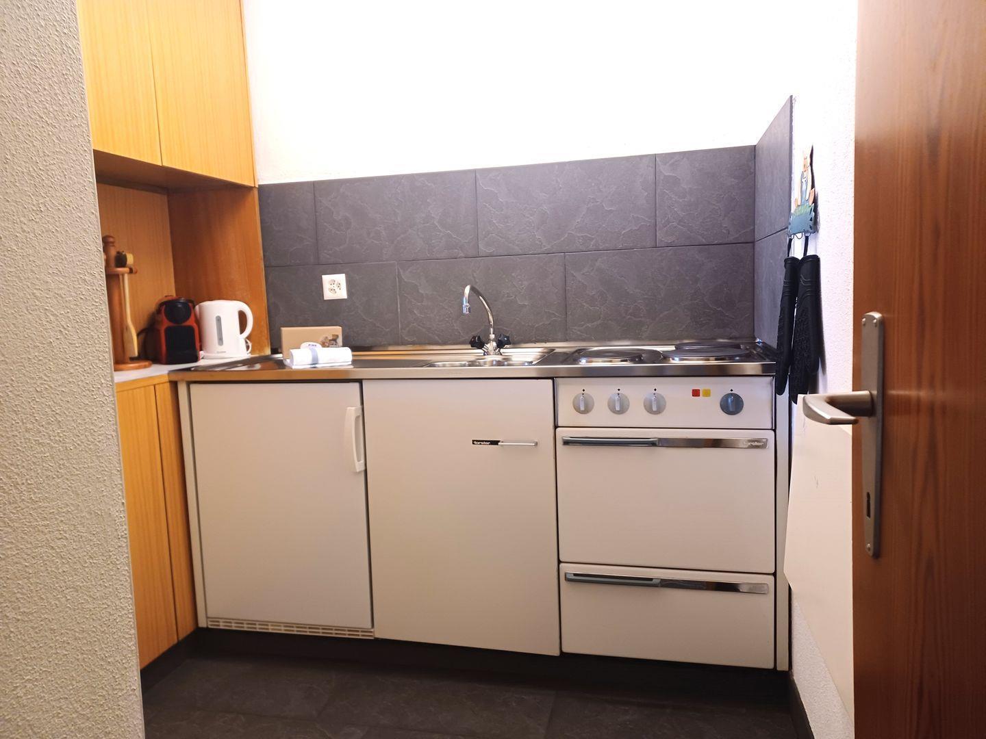 Freundliche Ferienwohnung im 5. Stock mit super Aussicht Richtung St. Moritz-Dorf. Zirka 40 m2. Wohn- /Esszimmer mit Balkon. Separate Küche ohne GS, Dusche/WC. Lift.