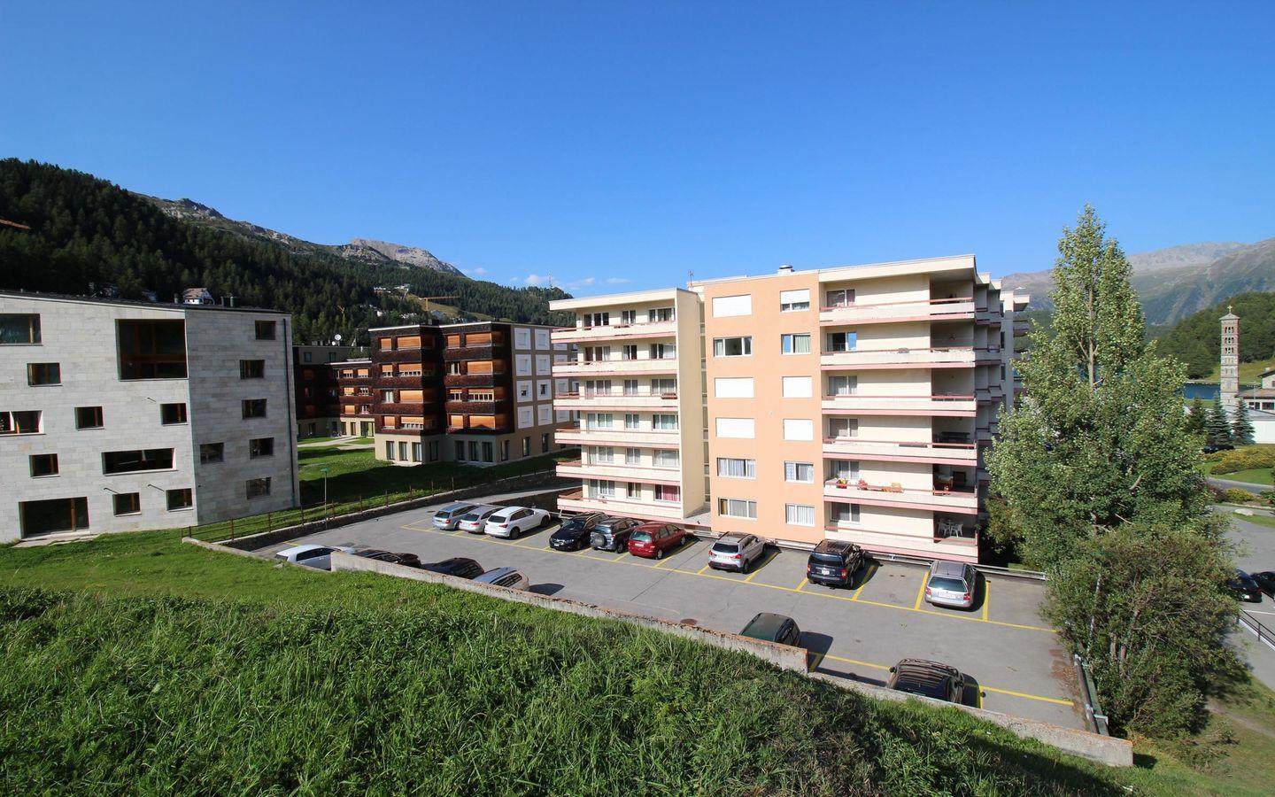 Zentral gelegenes Wohnhaus mit Ferienapartments in St. Moritz - Bad. Unmittelbar an Einkaufsmöglichkeiten und Busverbindung gelegen. Zum St. Moritzer See und zur Leichtathletik-Bahn benötigen Sie nur 5 Gehminuten und die Signal Bahn ins Corviglia Skigebiet erreichen Sie ebenfalls in 10 Gehminuten. Beschränkte Anzahl Aussenparkplätze (für 1 Auto, nicht reserviert) zum Ferienhaus gehörend.