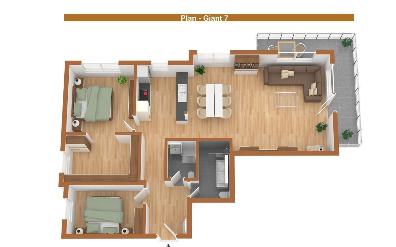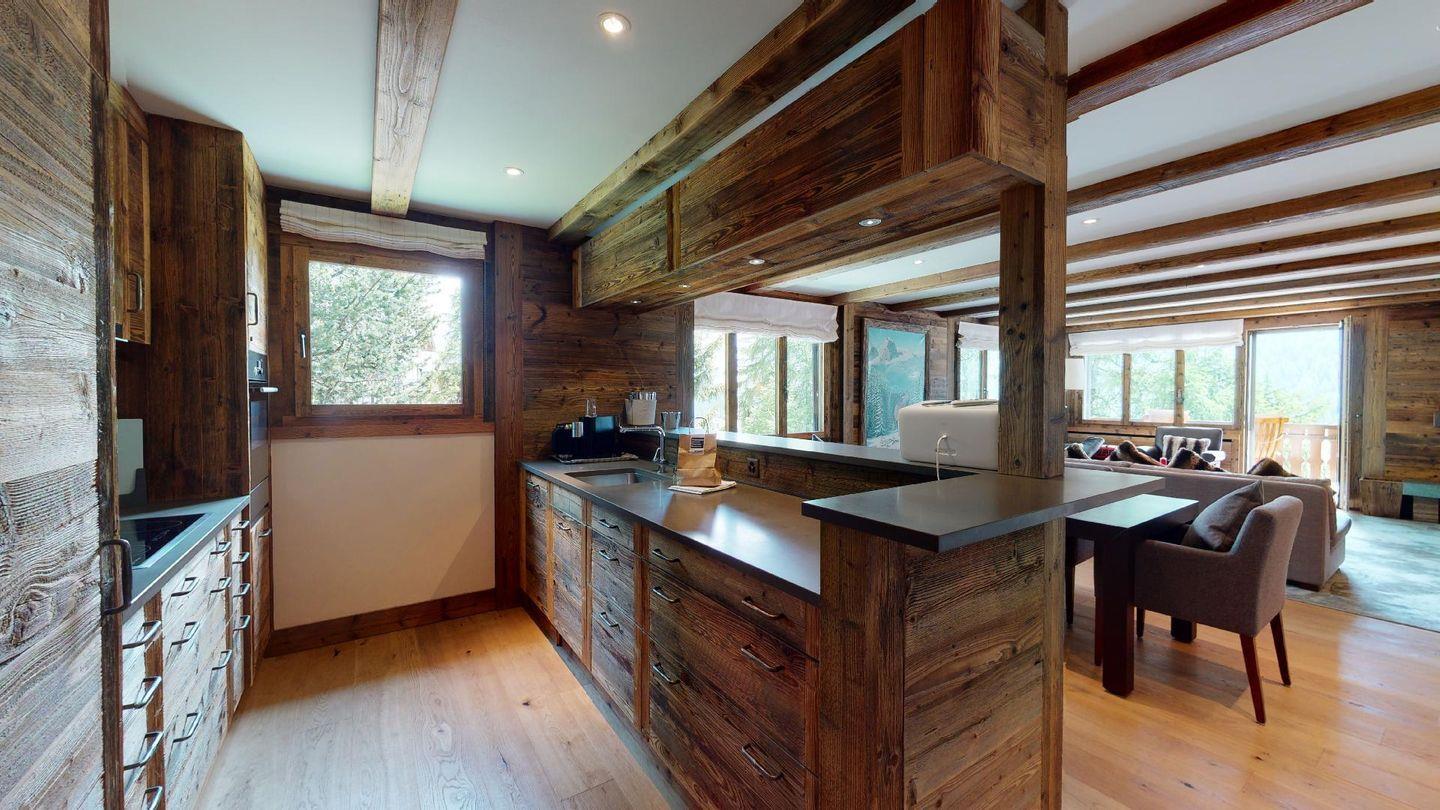 Luxuriöses Design im 'mountainstyle' widerspiegelt diese super attraktive 3-Zimmer Ferienwohnung im 2. Stock. Grosszügiges Wohn- /Esszimmer mit offener Küche, Kamin-Cheminee und Balkon. Grosses Elternschlafzimmer mit Ankleide und TV. 1 kleines Doppelschlafzimmer mit Doppelbett. 2 separate Duschen. Lift. Eigene Garage.