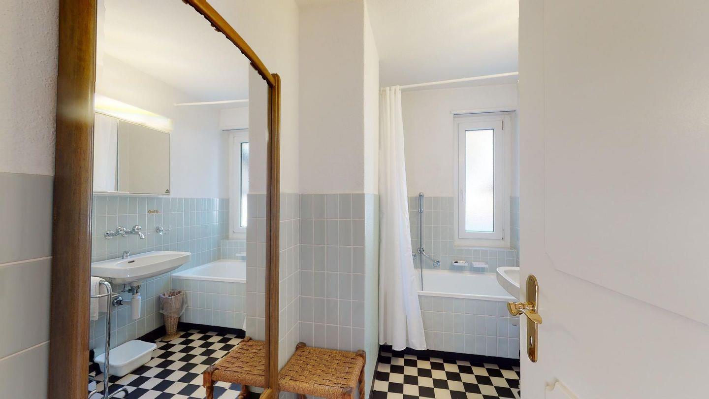 3-Zimmerwohnung im 1. Stock, 70 m2. Eingang mit Garderobe. Separates WC/Lavabo und Fenster. Bad mit Wanne/Lavabo und Fenster. Separate Küche mit Kühlschrank/Geschirrspüler/ Backofen. Wohn-/Esszimmer mit kleinem Balkon. Radio/TV und Internet. Ein kleines Zimmer mit 2 Betten. Ein Doppelzimmer. Komfortable Einrichtung. Skiraum zur Mitbenützung. Reservierter Aussenparkplatz. Haustiere sind nicht erlaubt. Keine Waschmaschine. Anreise Samstag