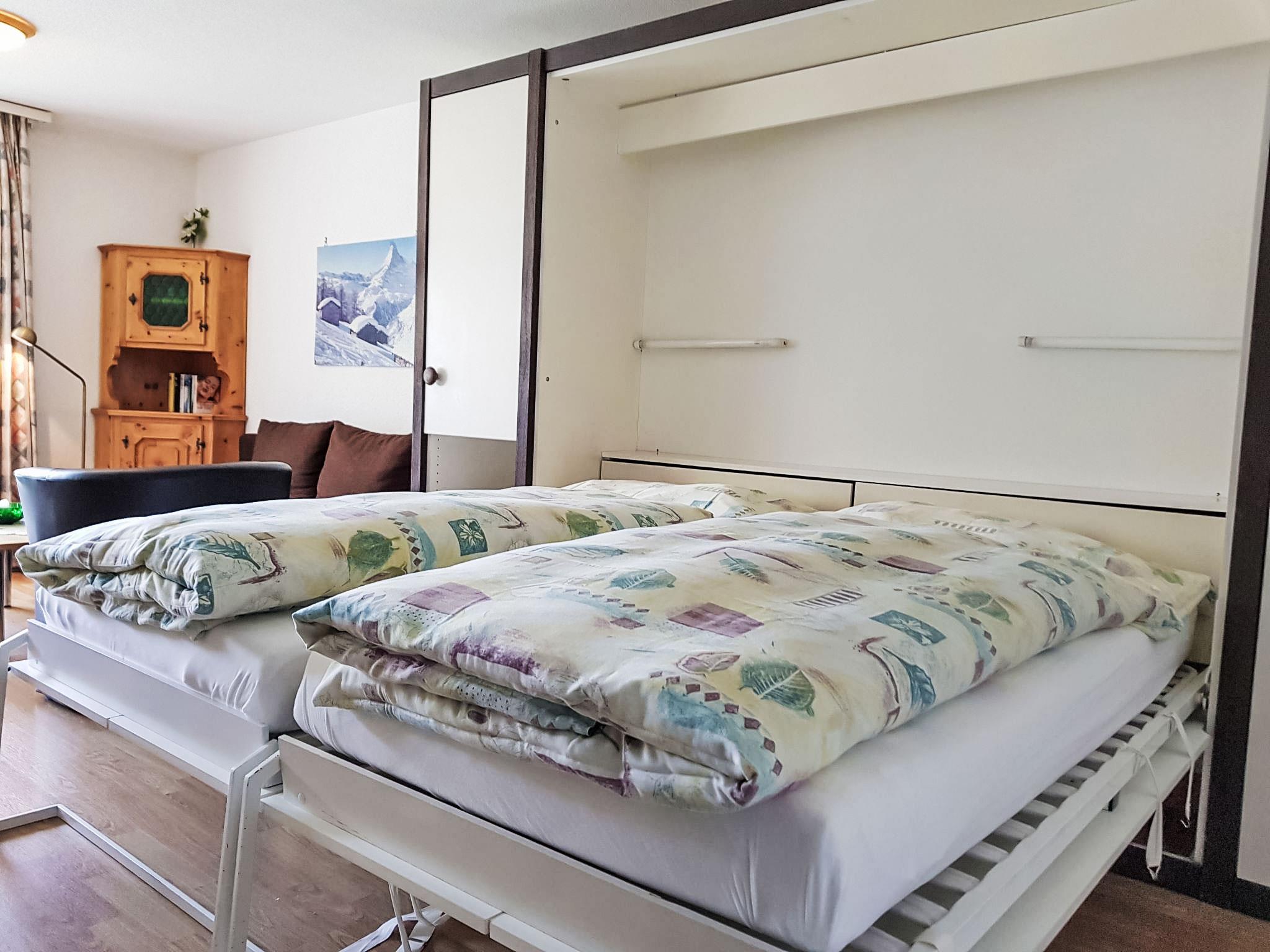 Cosy apartment house "Castor und Pollux", 5 storeys. 5 km from the centre of Zermatt, in a quiet, sunny position, 500 m from the lake. In the house: lift, storage room for skis, central heating system. Motor access to the house. Public car park at 350 m. Grocery, supermarket, restaurant 350 m, bus stop "Bahnhof St.Niklaus" 14 km, railway station "Bahnhof Täsch" 450 m. Cross country ski track 300 m. Please note: lift to 4th floor. Additional accommodations can be booked.