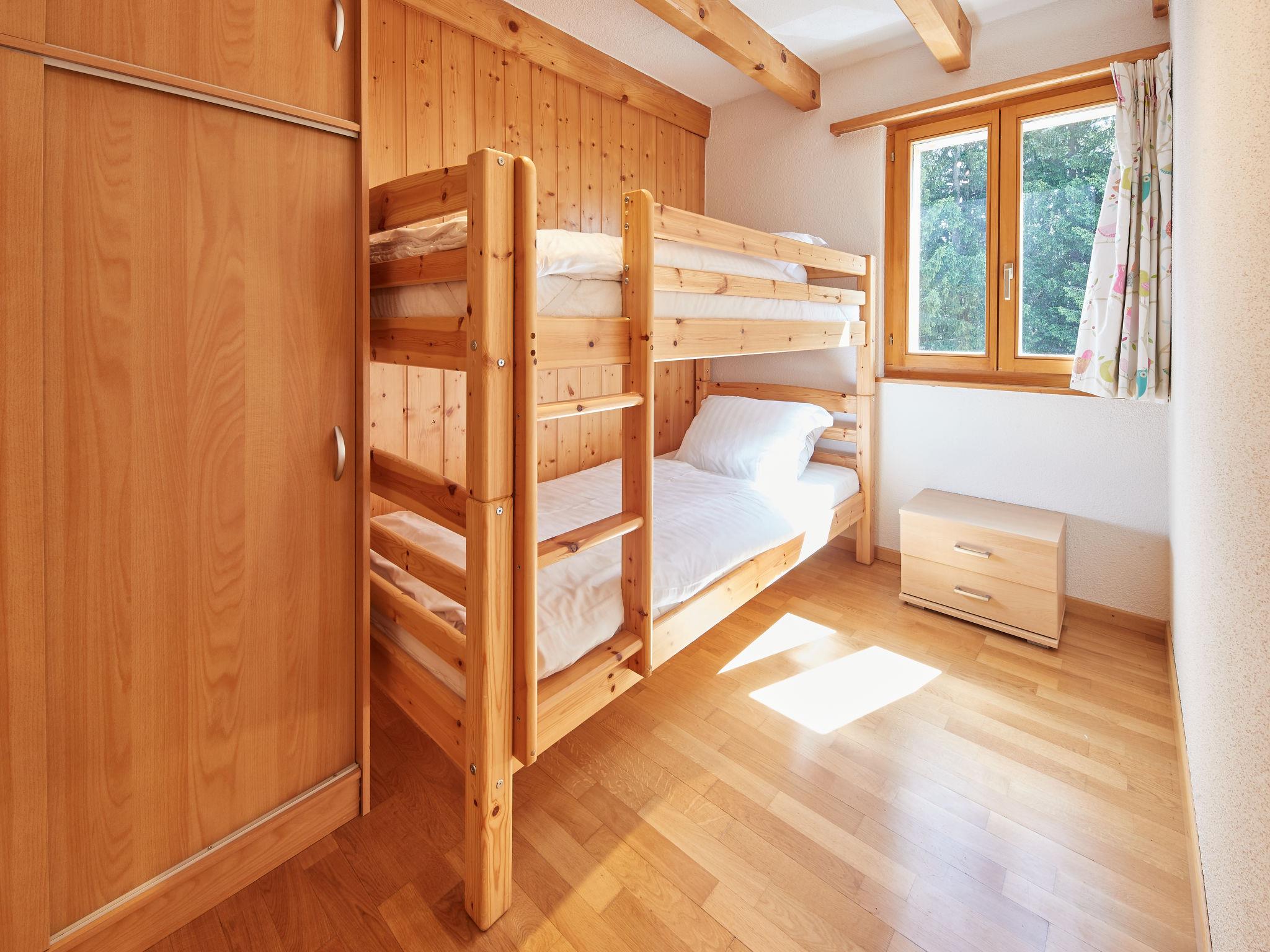 "Pinsons", 5-room apartment 65 m2 on 2 levels. Practical and cosy furnishings: living/dining room with Scandinavian wood stove and TV. Exit to the balcony. 1 room with 1 double bed (90 cm, length 190 cm). Exit to the balcony. 1 children's room with 1 bed (90 cm, length 190 cm). Open kitchen (oven, dishwasher, 4 ceramic glass hob hotplates, microwave, electric coffee machine). Shower, sep. WC. Top floor: (ladder) open gallery with sloping ceilings with 2 beds (90 cm, length 190 cm), 1 double bed (2 x 90 cm, length 190 cm). Shower/WC. Balcony. Balcony furniture. Panoramic view. Facilities: Internet (WiFi). Please note: non-smokers only. Instead of an enclosed bedroom, some sleeping areas are located in an open-plan area (gallery, alcove, etc.).