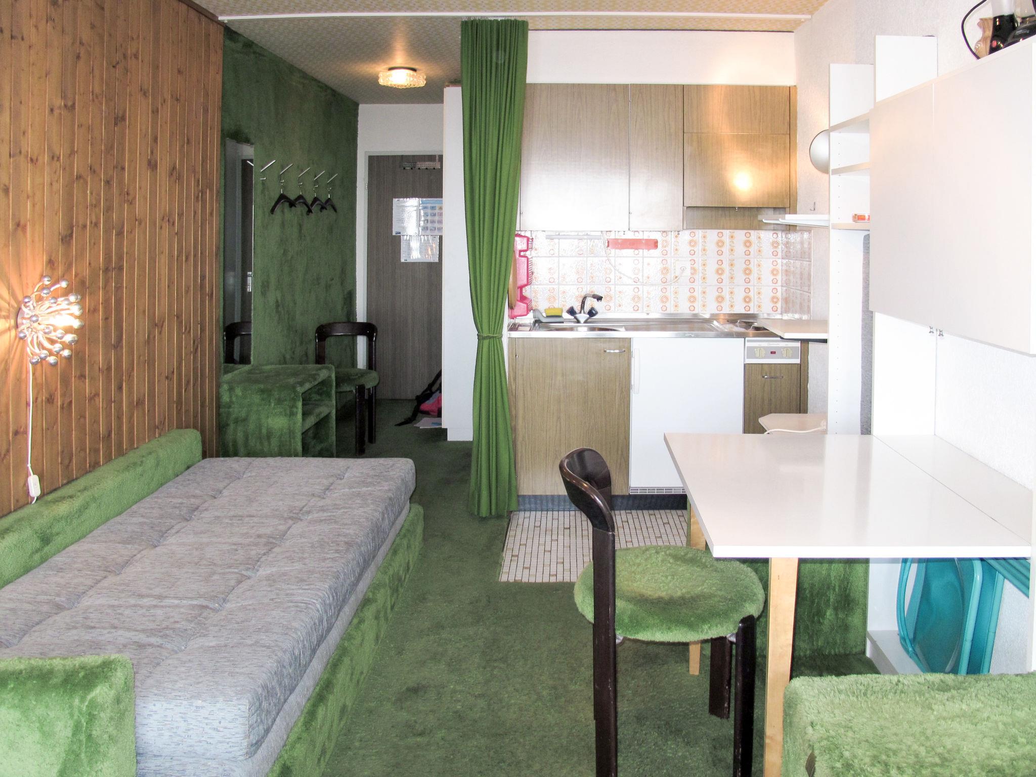 "Résidence Velan", 1-room studio 25 m2 on 2nd floor. Practical furnishings: living/sleeping room with 1 sofabed (90 cm, length 180 cm), 1 sleeping facility, cable TV and DVD. Exit to the balcony. (2 hot plates, electric coffee machine). Shower/WC. Balcony. Facilities: Internet (WiFi, extra). Please note: non-smokers only.