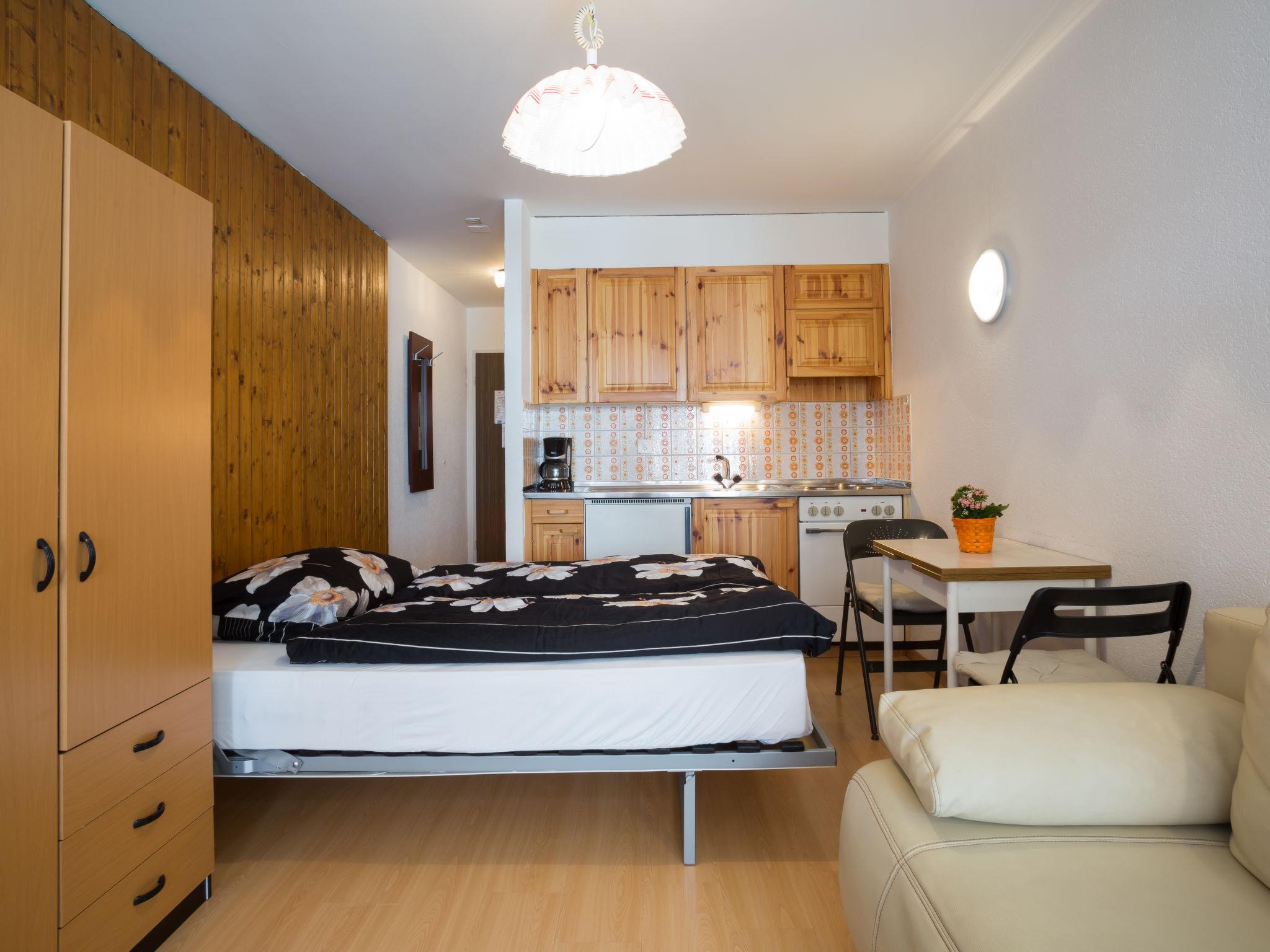 "Velan 115", 1-room studio 25 m2 on 1st floor. Tasteful and cosy furnishings: living/sleeping room with 1 double sofabed, 3 wall-trunk beds and TV. Exit to the balcony. Open kitchen (3 hot plates, oven, electric coffee machine). Bath/WC. Balcony, east facing position. Balcony furniture. Facilities: Internet (WiFi, extra). Please note: non-smokers only. Maximum 1 pet/ dog allowed.