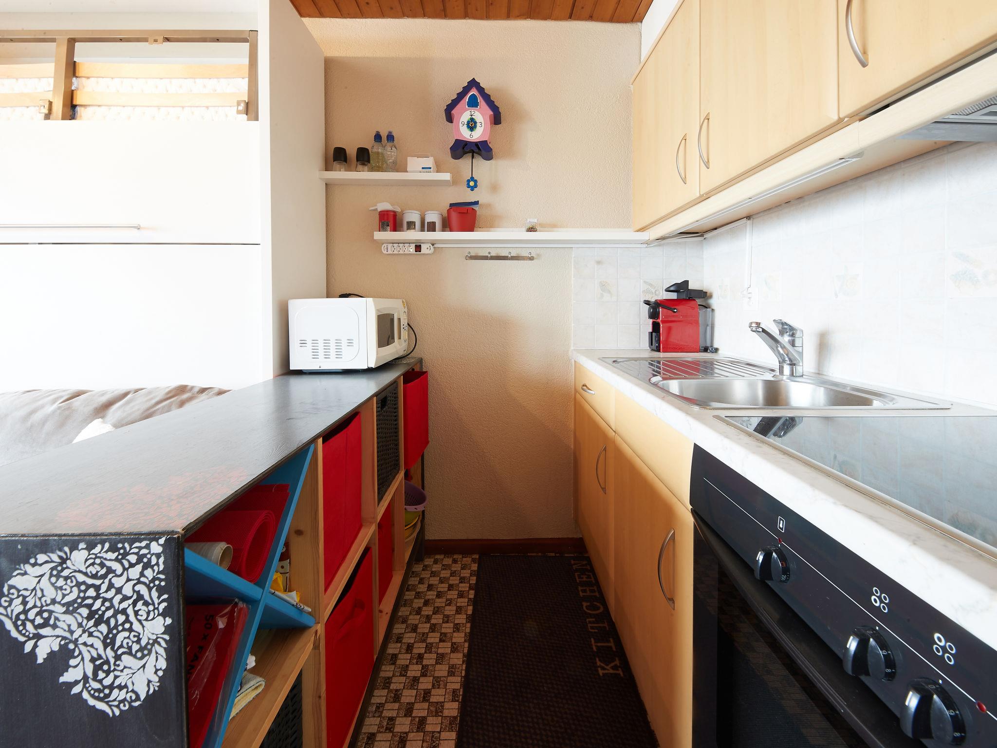 "Dixence 404", 2-room apartment on 4th floor. Practical and comfortable furnishings: living/sleeping room with 1 fold-away bed (140 cm, length 200 cm), TV. Exit to the balcony, east facing position. 1 room with 2 x 2 bunk beds (90 cm, length 200 cm). Open kitchen (oven, dishwasher, 4 ceramic glass hob hotplates, microwave). Shower/WC. Carpet. Balcony, east facing position. Very beautiful view of the mountains and the countryside. Facilities: Internet (WiFi). Please note: non-smokers only.