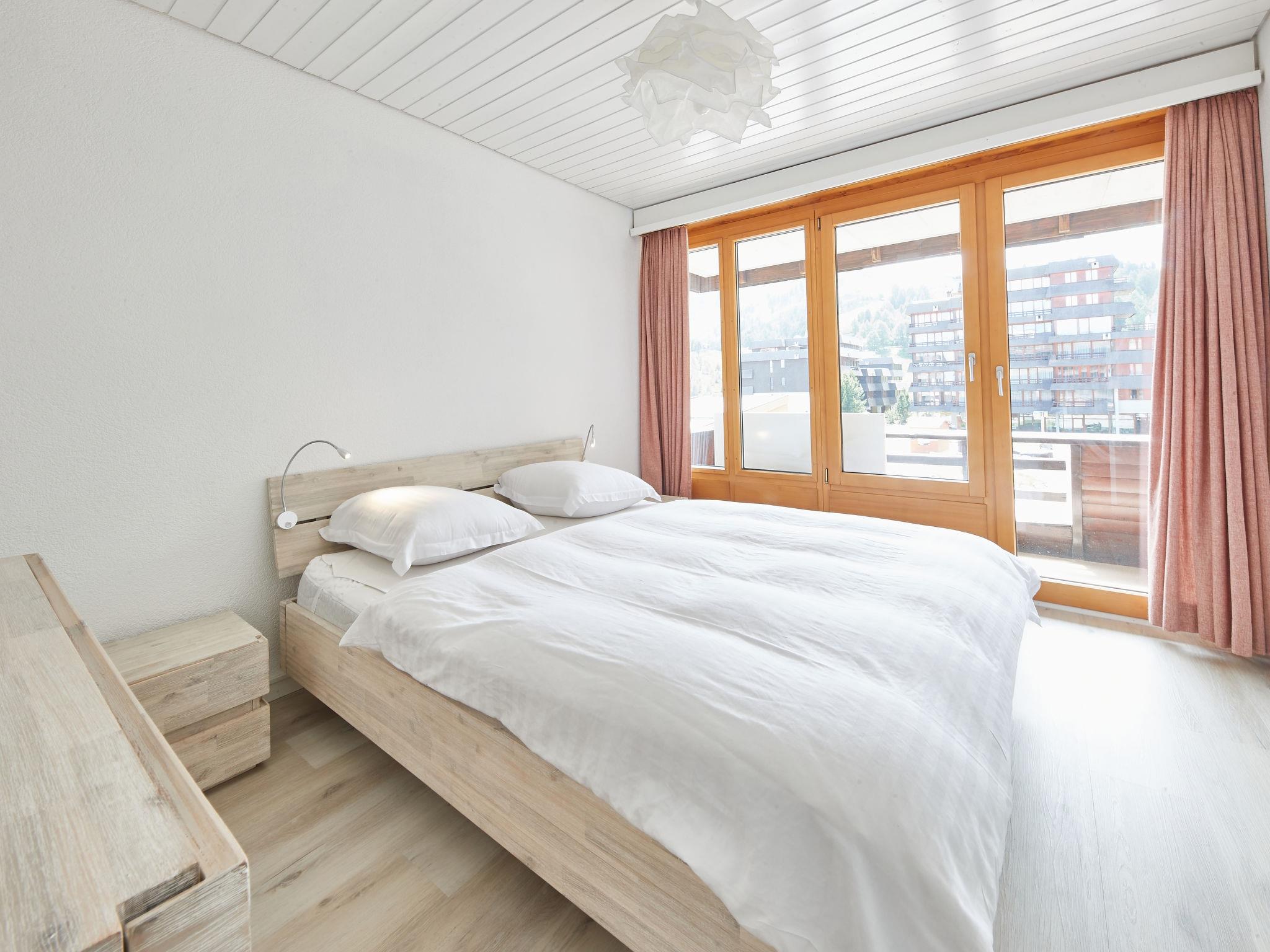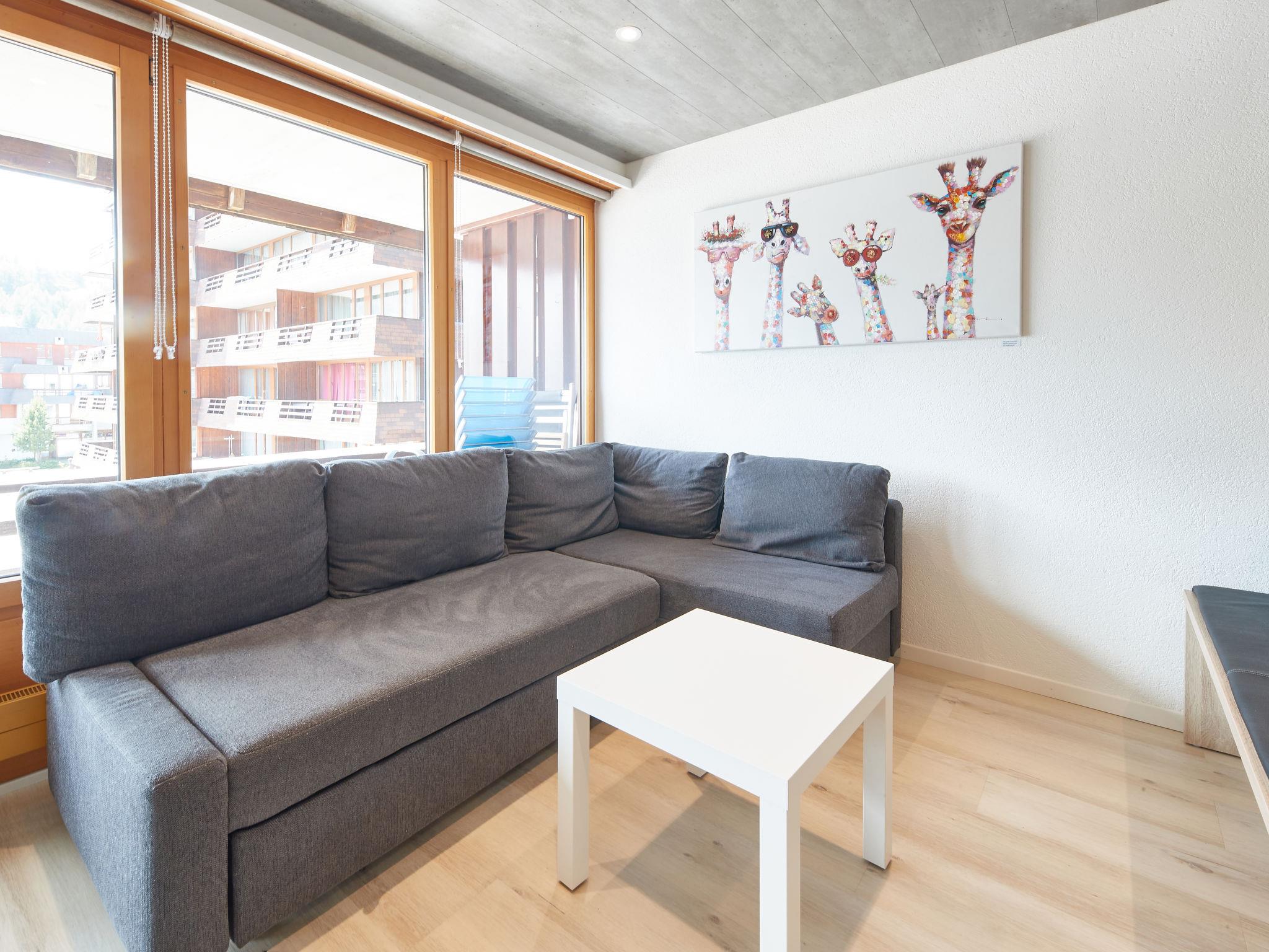"Flache 204", 2-room apartment. Modern and tasteful furnishings: living/sleeping room with TV. Exit to the balcony, south facing position. 1 room with 1 double bed (160 cm, length 200 cm). 1 room with 2 x 2 bunk beds (80 cm, length 180 cm). Open kitchen (oven, dishwasher, 4 ceramic glass hob hotplates, electric coffee machine, Capsules for coffee machine (Nespresso)). Shower/WC. Balcony. Balcony furniture. Very beautiful view of the mountains and the countryside. Facilities: Internet (WiFi, extra). Please note: non-smokers only.