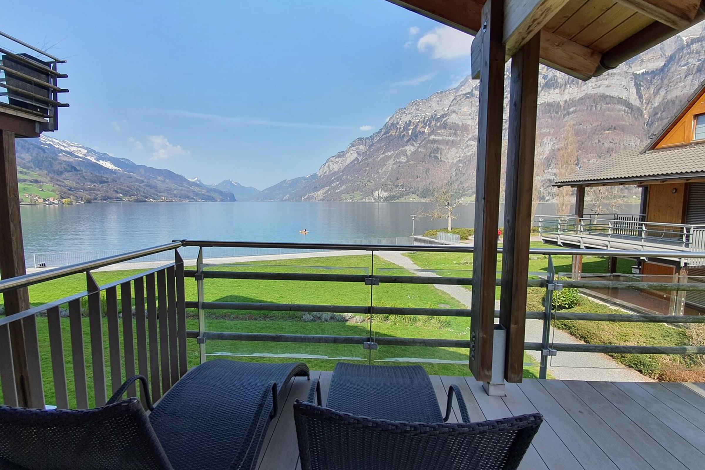 Walensee House & Apartments - directly on Lake Walen "Home is where you feel good and are treated well". The location on Lake Walen is breathtaking and offers an incredible view of the majestic Churfirsten peaks above Lake Walen. On the grounds of Resort Walensee there is a restaurant, a café and a sports shop with a wide selection of sports equipment, clothing and accessories. Last but not least, the SeeJet cable car is just a few steps away and takes you to the skiing, biking and hiking area of Flumserberg. In summer, after a hike in the mountains, the beautiful beach at Lake Walen invites you to swim and linger. So the holiday apartment of your choice is the ideal starting point for a few days' holiday for those seeking peace and quiet, for active people, for connoisseurs but also for families. We are pleased to announce the partnership with Tennis Club Terza. All apartment owner and guests of Walensee House & Apartments will be able to play tennis for free during their stay in one of our apartments. Details of the individual apartment 7x Comfort apartment (4-6 persons) with terrace 5x Deluxe apartment (4 - 6 persons) with terrace 5x Deluxe Penthouse (4 - 6 persons) with terrace 6x Penthouse apartment (6 - 8 persons) with terrace Interior