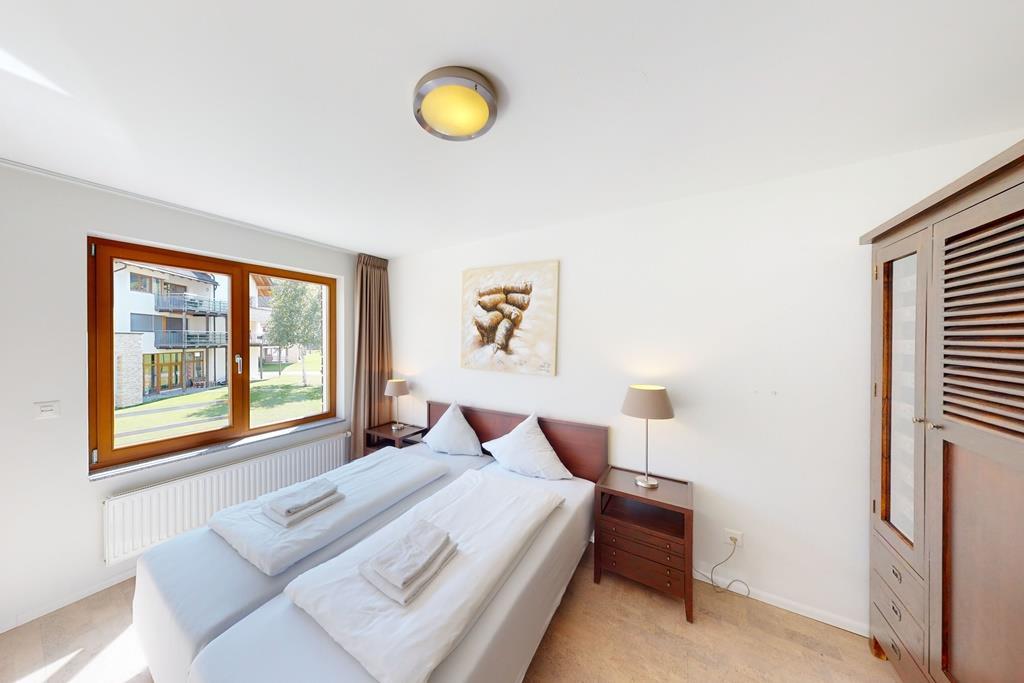The holiday apartment has 3 bedrooms with 2 single beds each a bathroom with shower, bath, toilet, washbasin and sauna a separate toilet with washbasin a separate shower with washbasin a fully equipped kitchen with Nespresso capsule machine a balcony with a breathtaking view of the lake Interior & technical equipment