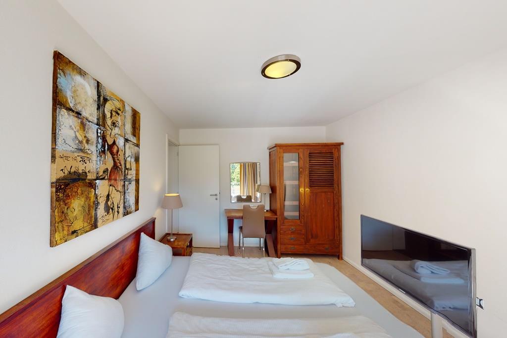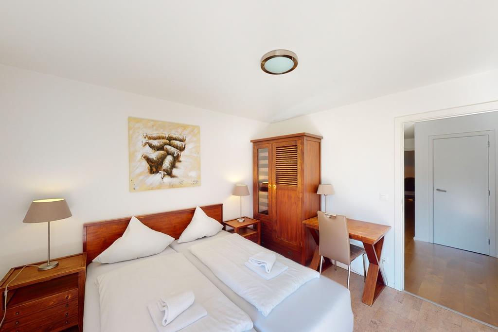 The holiday apartment has3 bedrooms with 2 single beds eacha bathroom with shower, toilet and washbasina separate toilet with washbasina fully equipped kitchen with Nespresso capsule machinea balcony with partial lake viewInterior & technical equipment