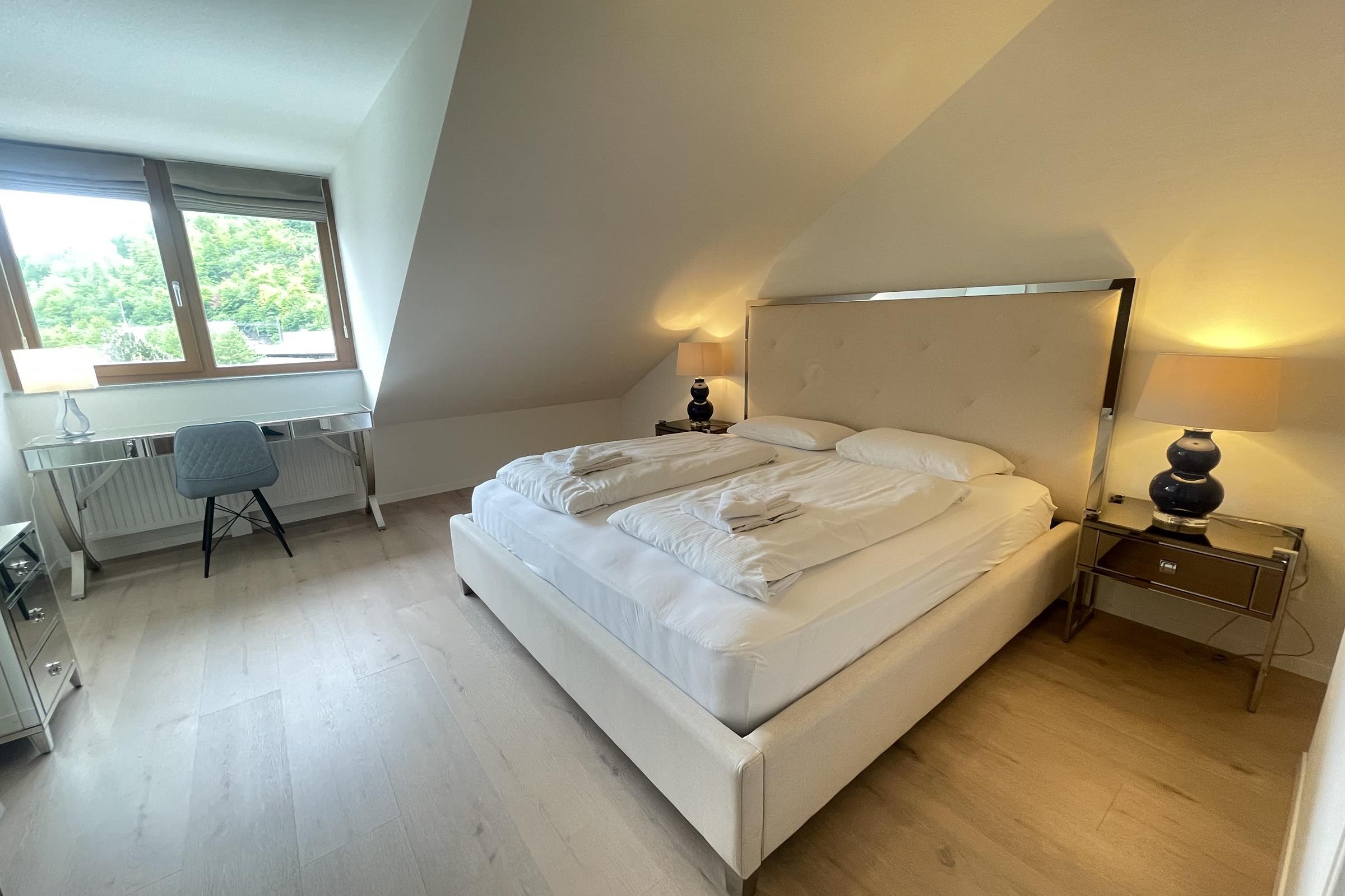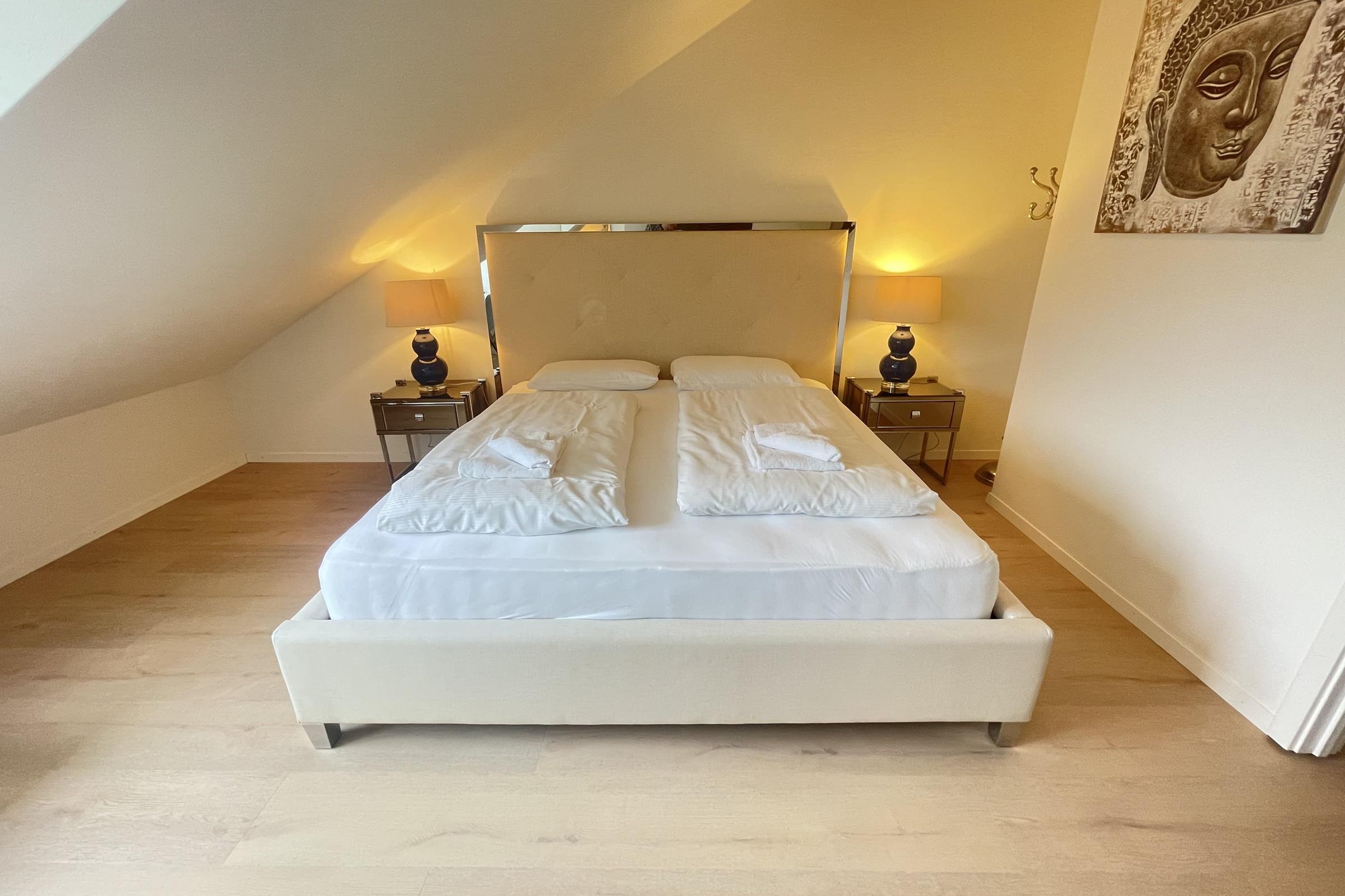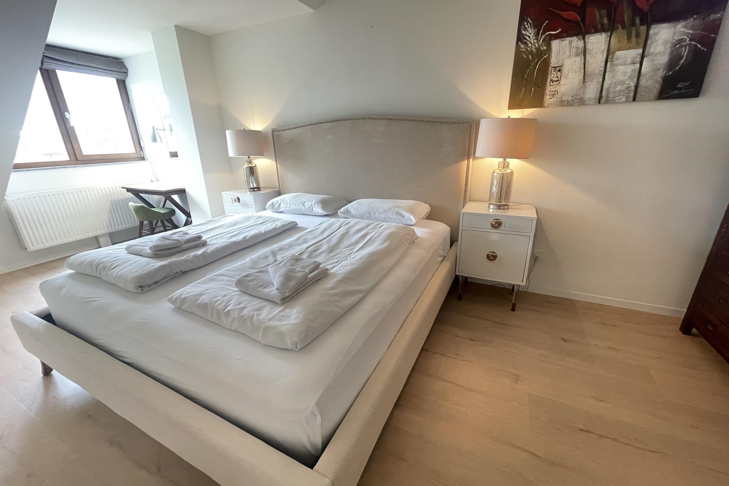 The penthouse is modernly furnished and has a spacious and cosy interior. Free Wi-Fi throughout the apartment and a smart-TV is available.360°-tour through the apartment