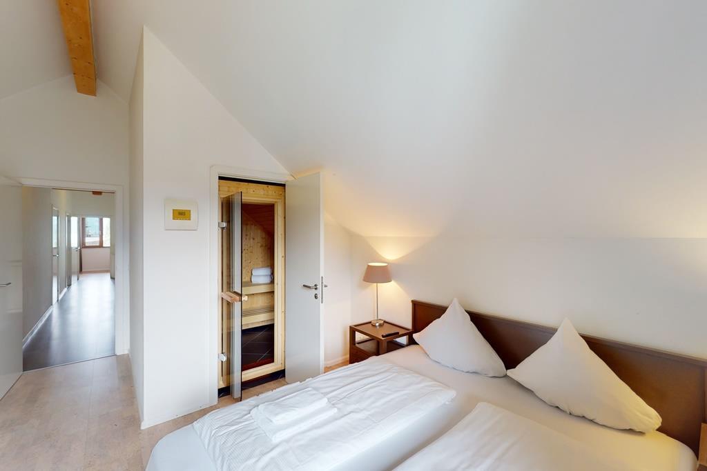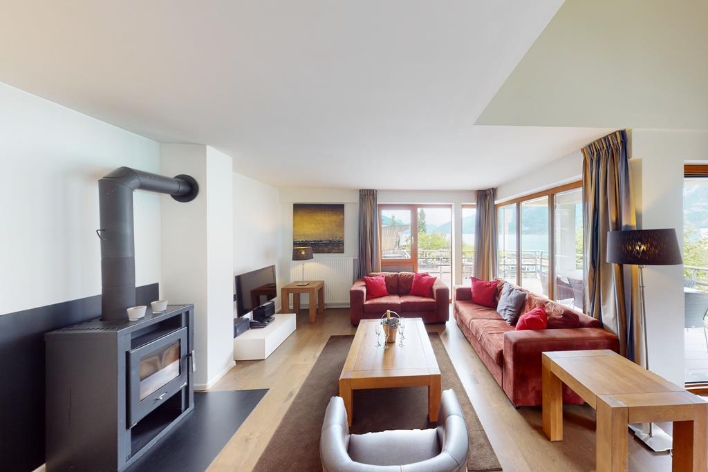 The Penthouse hastwo floors with gallery3 bedrooms with king-size bedsa bathroom with bath/shower, sauna, whirlpool, toilet and washbasina separate toilet with shower spray and washbasina fully equipped kitchen with Nespresso capsule machinea balcony with lake, mountain and harbour viewInterior & technical equipment