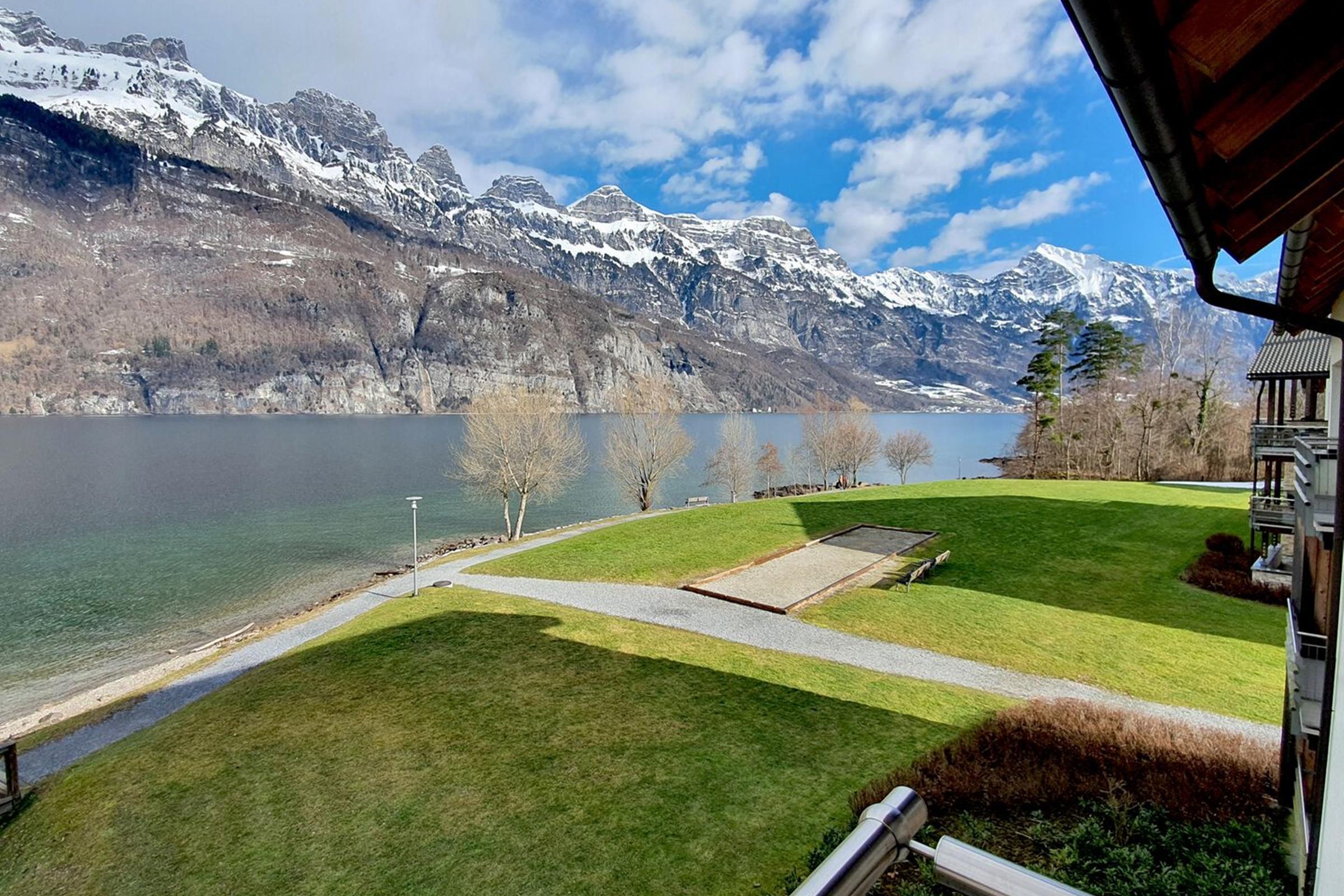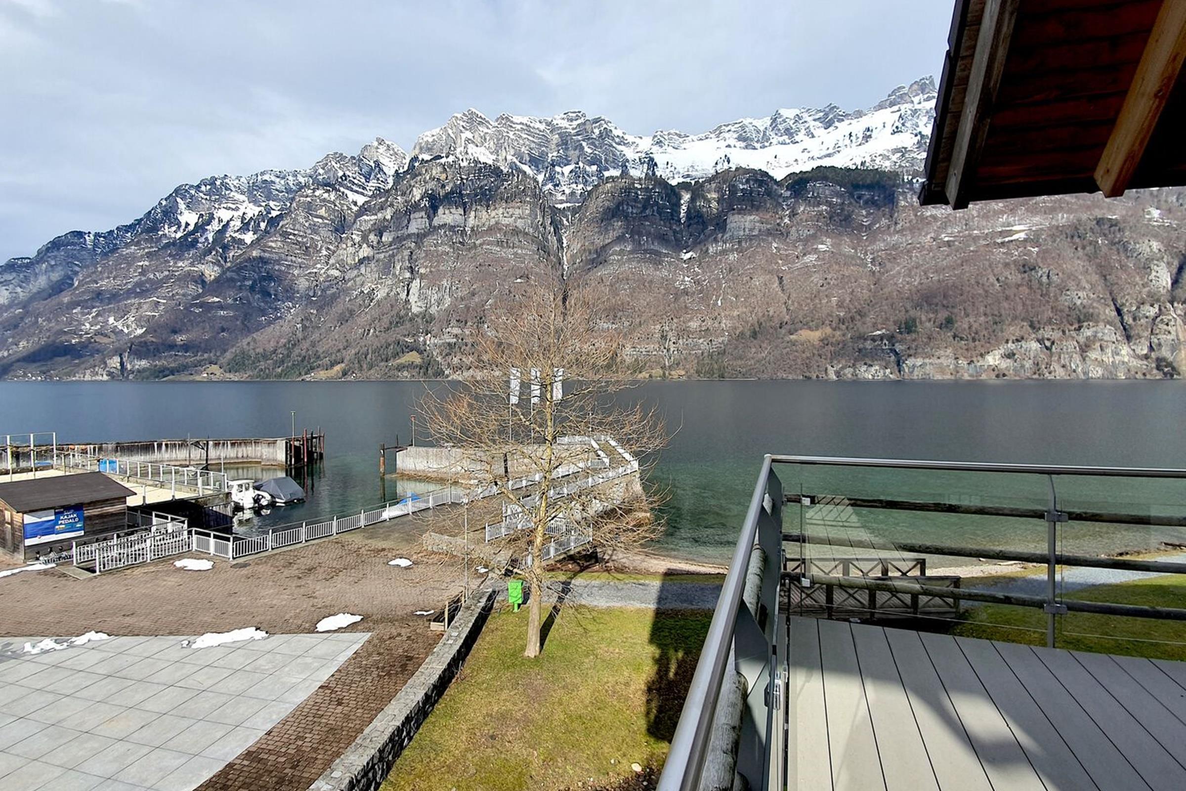 Walensee House & Apartments - directly on Lake Walen "Home is where you feel good and are treated well". The location on Lake Walen is breathtaking and offers an incredible view of the majestic Churfirsten peaks above Lake Walen. On the grounds of Resort Walensee there is a restaurant, a café and a sports shop with a wide selection of sports equipment, clothing and accessories. Last but not least, the SeeJet cable car is just a few steps away and takes you to the skiing, biking and hiking area of Flumserberg. In summer, after a hike in the mountains, the beautiful beach at Lake Walen invites you to swim and linger. So the holiday apartment of your choice is the ideal starting point for a few days' holiday for those seeking peace and quiet, for active people, for connoisseurs but also for families. We are pleased to announce the partnership with Tennis Club Terza. All apartment owner and guests of Walensee House & Apartments will be able to play tennis for free during their stay in one of our apartments. Details of the individual apartment 7x Comfort apartment (4-6 persons) with terrace 5x Deluxe apartment (4 - 6 persons) with terrace 5x Deluxe Penthouse (4 - 6 persons) with terrace 6x Penthouse apartment (6 - 8 persons) with terrace Interior