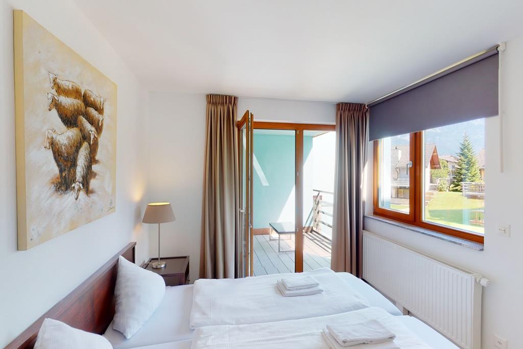 The holiday apartment has2 bedrooms with 2 single beds eacha bathroom with bath/shower, toilet and washbasina separate toilet with washbasina fully equipped kitchen with Nespresso capsule machinea balcony with mountain view and partly lake viewInterior & technical equipment
