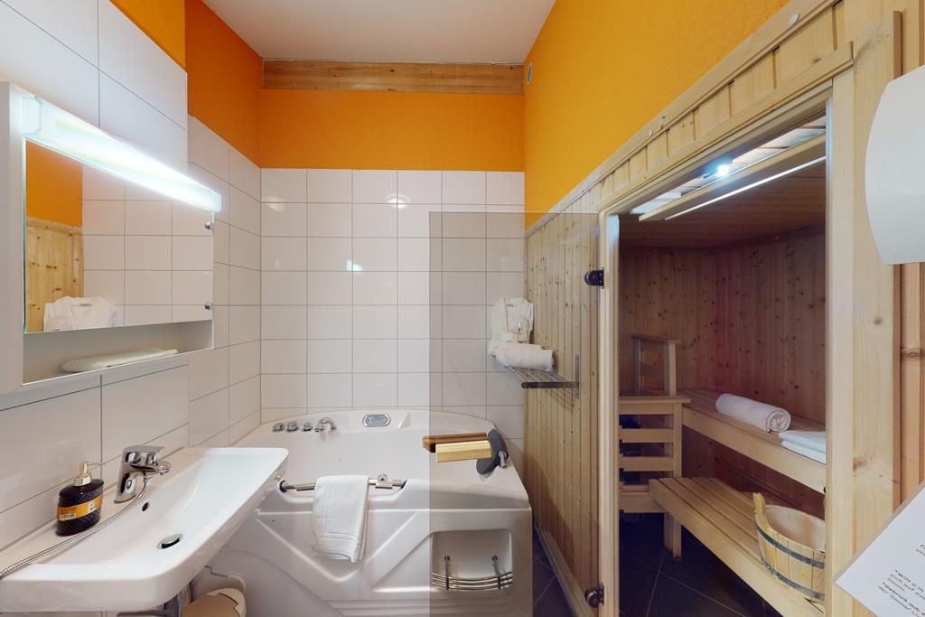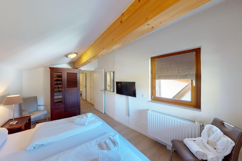 The Penthouse hastwo floors2 bedrooms with king-size bedsa bathroom with bath/shower, sauna, toilet and washbasina separate toilet with shower spray and washbasina fully equipped kitchen with Nespresso capsule machinea balcony with lake and mountin viewInterior & technical equipment