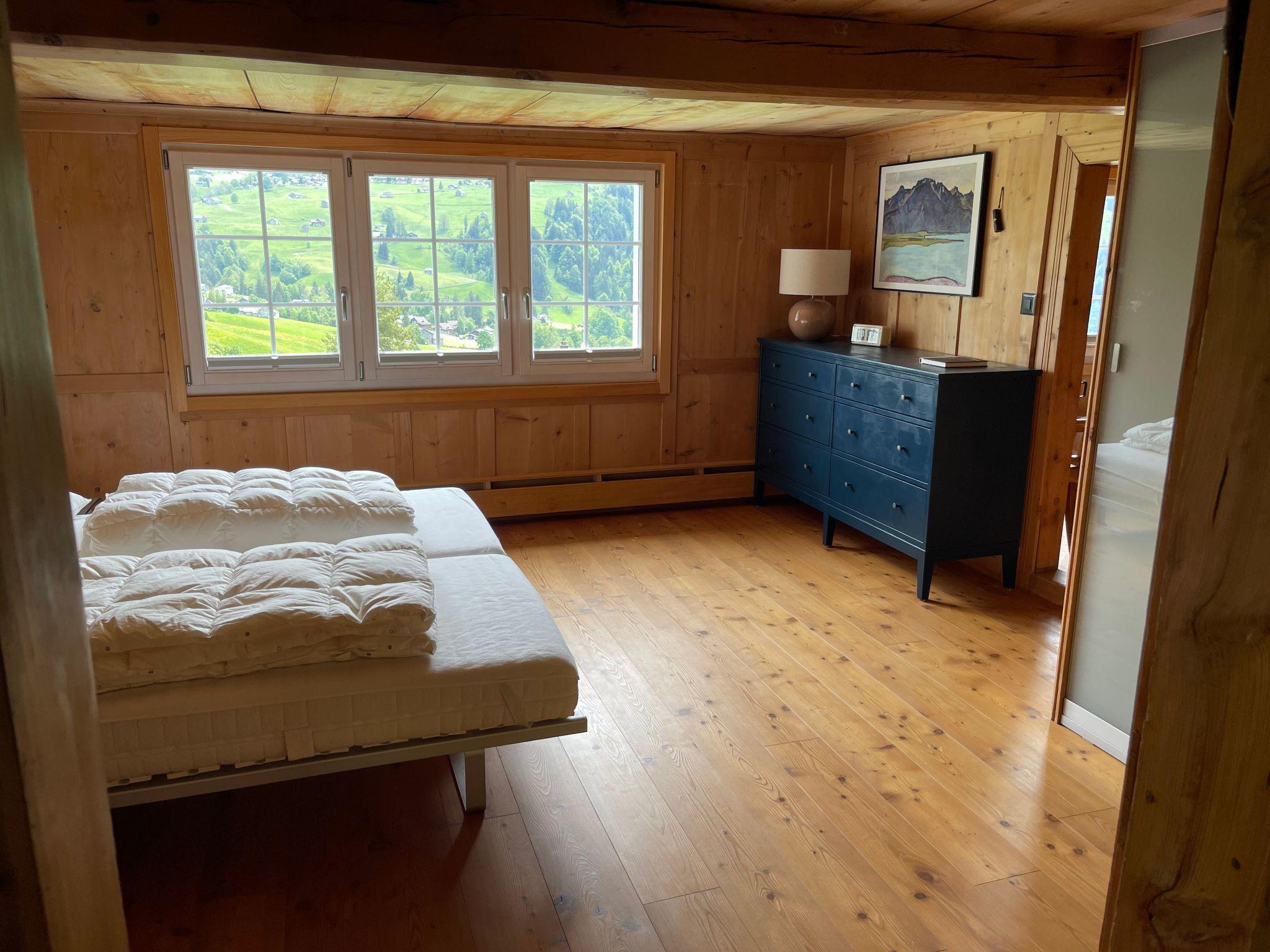 On the south side of the house, a stone table invites you to dine al fresco and allows you to fully savour the quiet and sunny location. This little oasis is part of a historic, 300-year-old typical Toggenburg farmhouse, which is a listed building with a smoking and fire ban.