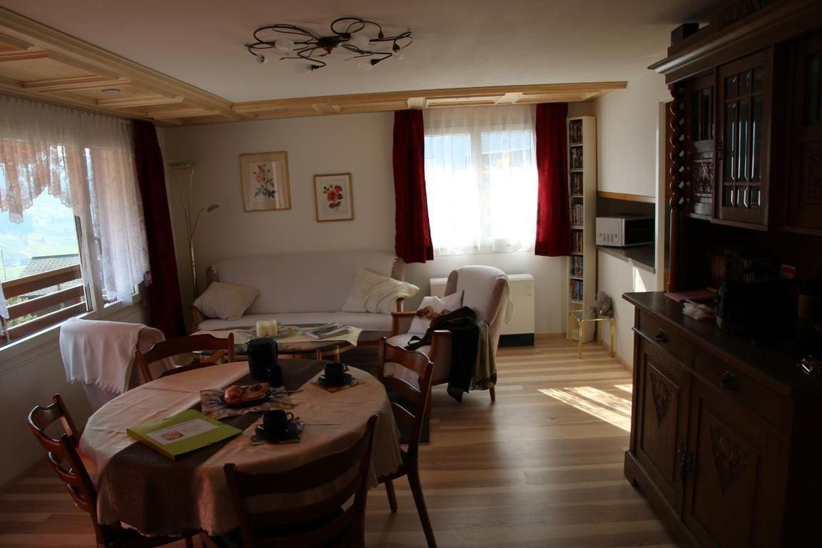 Inside, a lovingly partially renovated flat awaits you, in which modern chalet style has been tastefully combined with high-quality materials. The living room, freshly renovated in spring 2017, creates a cosy and inviting atmosphere with its stylish furnishings. The two bedrooms, which were completely renovated in autumn 2014, radiate a warm chalet atmosphere with Swiss stone pine ceilings, parquet floors, spacious wardrobes and wooden beds. The open-plan kitchen is not only extremely functional, but also well equipped with various cooking utensils, crockery and even a fondue set or raclette set for enjoying meals together in the living room.