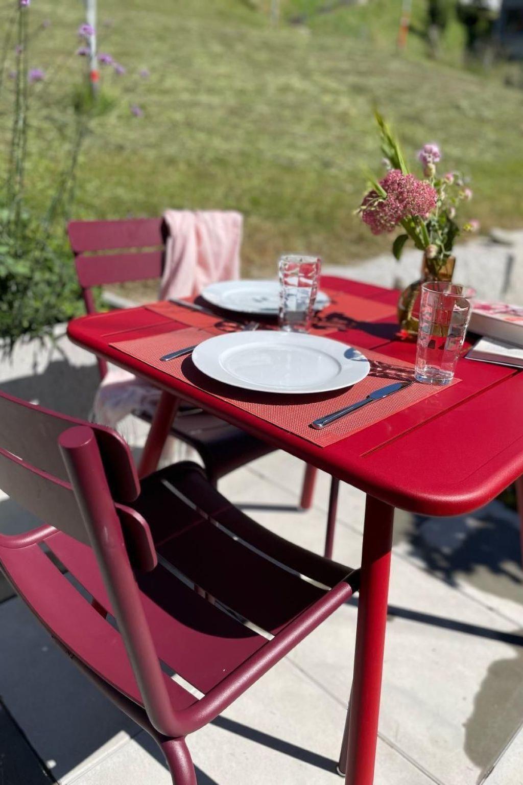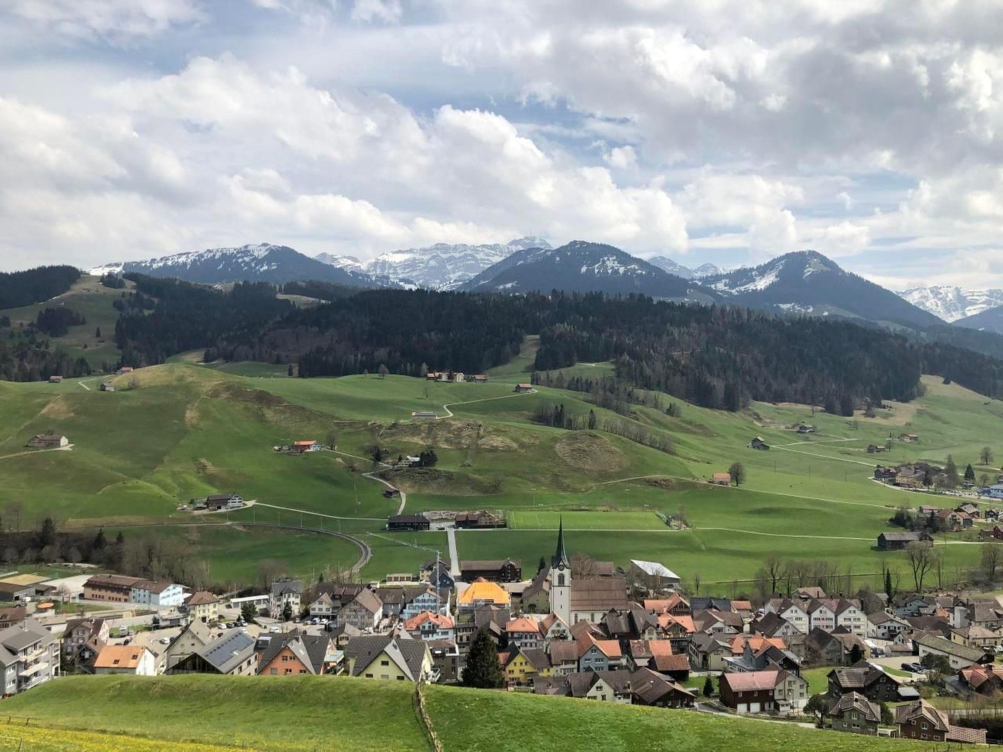 Time for beautiful hikes or relaxation! Enjoy a stylish experience in our centrally located 2.5 room flat for 3 adults (2 adults and 1–2 children) in the village of Urnäsch in the beautiful Appenzellerland. The newly renovated flat has a modern kitchen with a spacious cooking island. In the living room there is a round dining table for 4 people, a children's chair can be added on request.