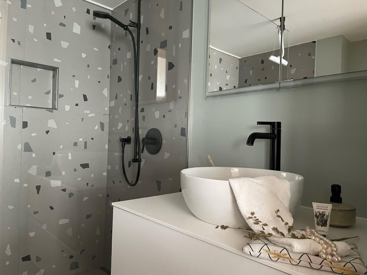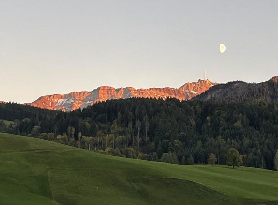 Time for beautiful hikes or relaxation! Enjoy a stylish experience in our centrally located 2.5 room flat in the village of Urnäsch in the beautiful Appenzellerland. The newly renovated flat has a modern kitchen with a spacious cooking island. In the living room there is a round dining table for 4 people, a children's chair can be added on request. In addition, a cosy sofa (extendable, space for 2 adults) invites you to linger. Two cosy armchairs round off the stylish furnishings. The bedroom with a double bed promises restful nights. A baby cot can also be booked. The baby cot must be placed in the living room. The stylish bathroom has a walk-in shower, WC and washbasin with large mirror. A separate garden seating area awaits you outside, inviting you to enjoy cosy evenings. There is free public parking directly opposite the holiday flat. The railway station, the post bus stop (connection to Schwägalp - Säntis) and all shops for daily needs are just a two-minute walk away. Despite the rural location, the village of Appenzell (10 km) and the cultural city of St. Gallen (20 km) are within easy reach. We are a member of the Oskar holiday card, which can be purchased directly from us.