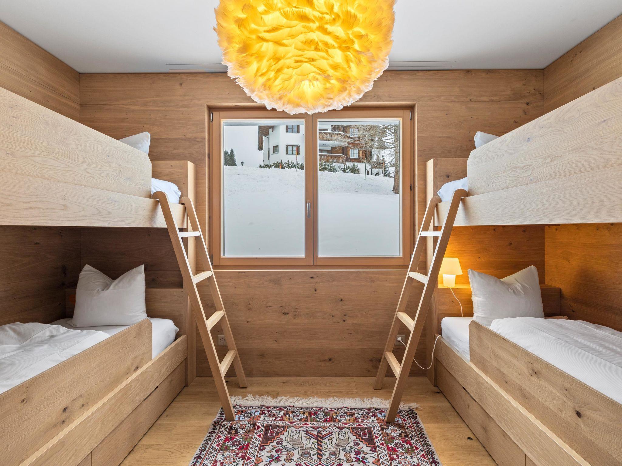 Ground floor / Lift / Wifi yes / 2 rooms with double beds / 1 room with two bunk beds / 1 bathroom with WC and bath / 1 bathroom with WC and shower. The flat is located in the centre of Valbella, close to the ski slope and the Valbella ski lift.