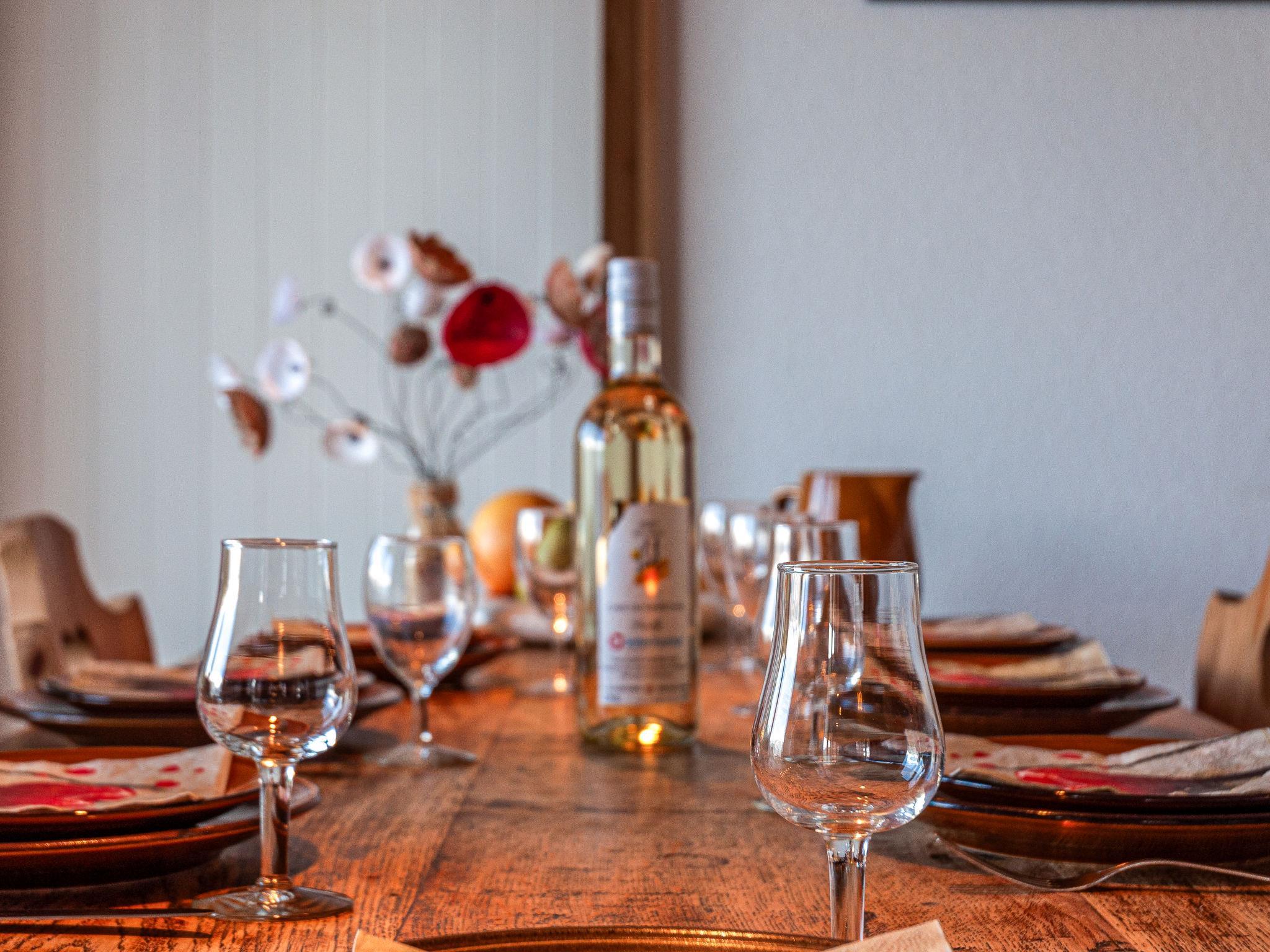 "Jasmins 2", 4-room apartment 78 m2, on the ground floor. Comfortable and beautiful furnishings: entrance hall. Living/dining room with open-hearth fireplace (only for decoration), cable TV. Exit to the terrace, north facing position and west facing position. 1 room with 1 bed (90 cm, length 190 cm), 1 x 2 bunk beds (90 cm, length 200 cm), hand-basin. 2 rooms, each room with 1 french bed (180 cm, length 190 cm). Exit to the terrace. Open kitchen (oven, dishwasher, 4 ceramic glass hob hotplates, toaster, kettle, electric coffee machine, Capsules for coffee machine (Dolce Gusto) extra, raclette grill, fondue Set (cheese)) with bar. Bath/WC, 2 showers/WC. Large terrace, patio. Terrace furniture. Very beautiful view of the mountains and the valley. Facilities: hair dryer. Internet (WiFi, free). Parking (roofed) at 500 m. Please note: non-smokers only.