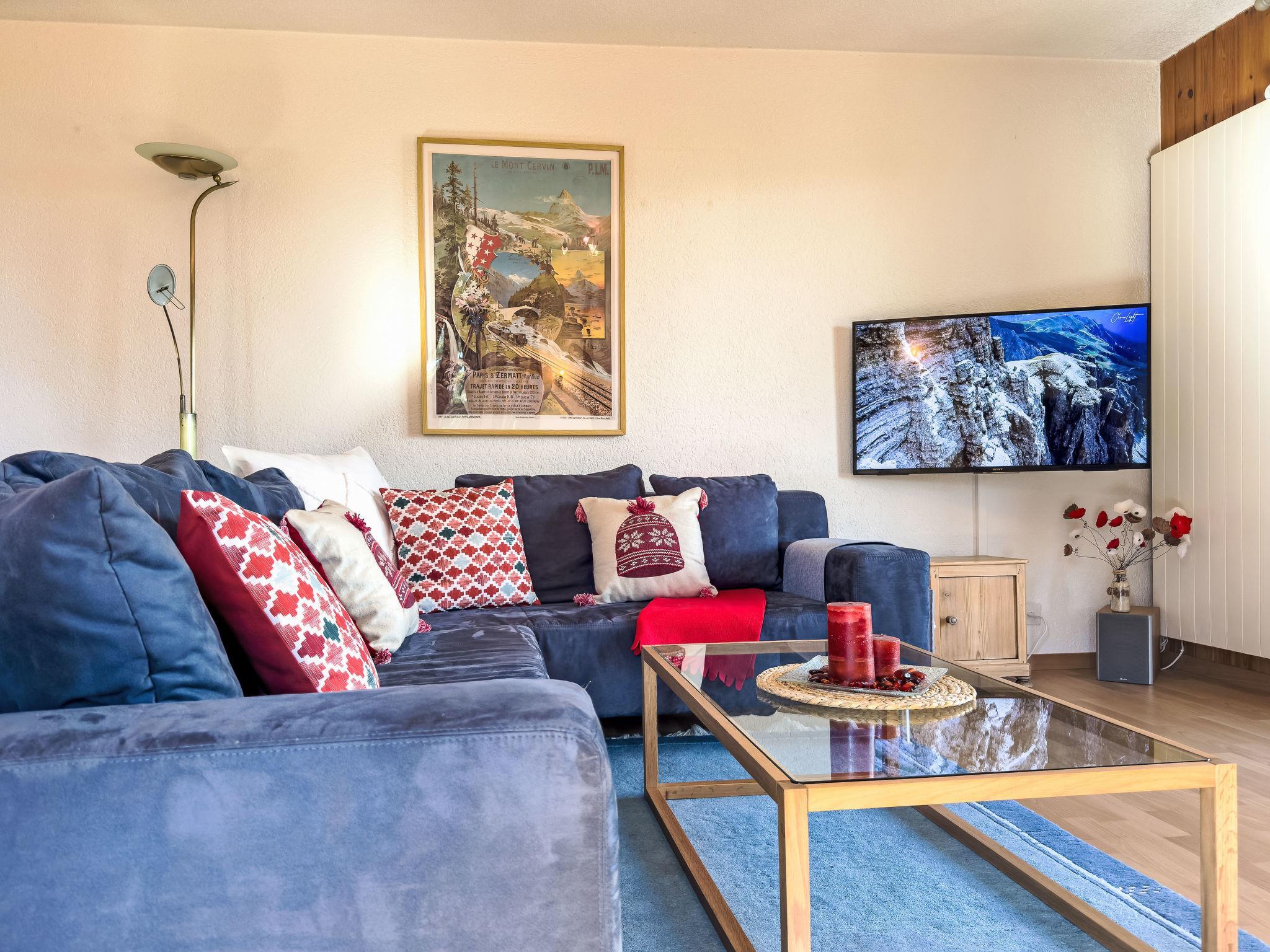 "Chamois AZ10", 4-room apartment 100 m2 on 1st floor. Bright, partly renovated, beautiful and tasteful furnishings: entrance hall. Living/dining room with Scandinavian wood stove and cable TV. Exit to the balcony. 1 room with 1 x 2 bunk beds (90 cm, length 190 cm). 1 room with 1 french bed (160 cm, length 200 cm). Exit to the balcony. 1 room with 1 pull-out bed (2 pers. 2 x 90 cm, length 190 cm). Exit to the balcony. Open kitchen (oven, dishwasher, 4 ceramic glass hob hotplates, kettle, microwave, electric coffee machine, Capsules for coffee machine (Nespresso) extra, raclette grill, fondue Set (cheese)). Bath/WC, shower/WC. 2 large balconies, north-east facing position and south-east facing position. Balcony furniture, barbecue. Very beautiful view of the mountains. Facilities: Internet (WiFi, free). Please note: non-smokers only.