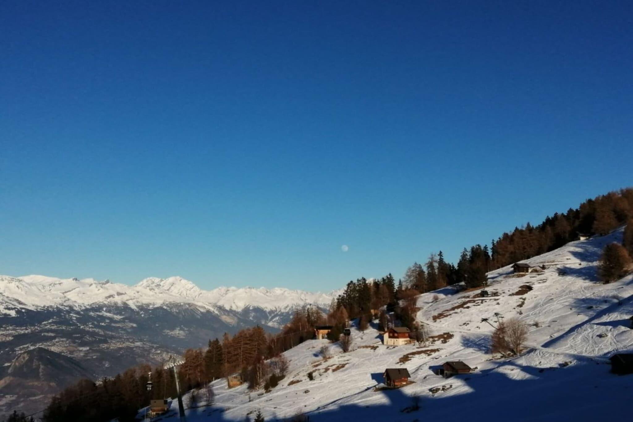 Oplev skønheden i Veysonnaz, Schweiz, i en charmerende 55 m² lejlighed perfekt beliggende i det berømte 4 Vallées skiområde. Med plads til op til 6 gæster tilbyder dette hyggelige tilflugtssted en betagende udsigt over dalen og bjergene, kun få skridt fra gondolstationen og skiløjperne. Nyd fantastiske panoramaudsigter i Rhone-dalen fra din private balkon, mens du nyder godt af en central beliggenhed nær butikker og restauranter. Det rummelige opholds- og spiseområde har en komfortabel sovesofa (140 x 200), kabel-tv og dvd-afspiller, suppleret med et fuldt udstyret køkken med keramisk kogeplade, ovn, køleskab, mikroovn, opvaskemaskine og kaffemaskine for nem tilberedning af måltider . Indkvarteringen omfatter et soveværelse med 2 enkeltsenge (90 x 200) og et hyggeligt værelse med køjesenge (90 x 200) samt et badeværelse med badekar, håndvask og toilet. Bygningsfaciliteter inkluderer et vaskerum og skirum, med en indendørs parkeringsplads til rådighed (afhængig af tilgængelighed). Om vinteren kan du forkæle dig med spændende skiløjper, mens sommeren inviterer dig til at udforske den naturskønne Bisse de Vex-vandresti. Derudover har gæsterne gratis adgang til den offentlige swimmingpool og kan deltage i Sun&Fun-aktivitetsprogrammet i højsæsonen. For ekstra komfort kan valgfrie tjenester såsom sengelinned, slutrengøring og gourmetkurve arrangeres.