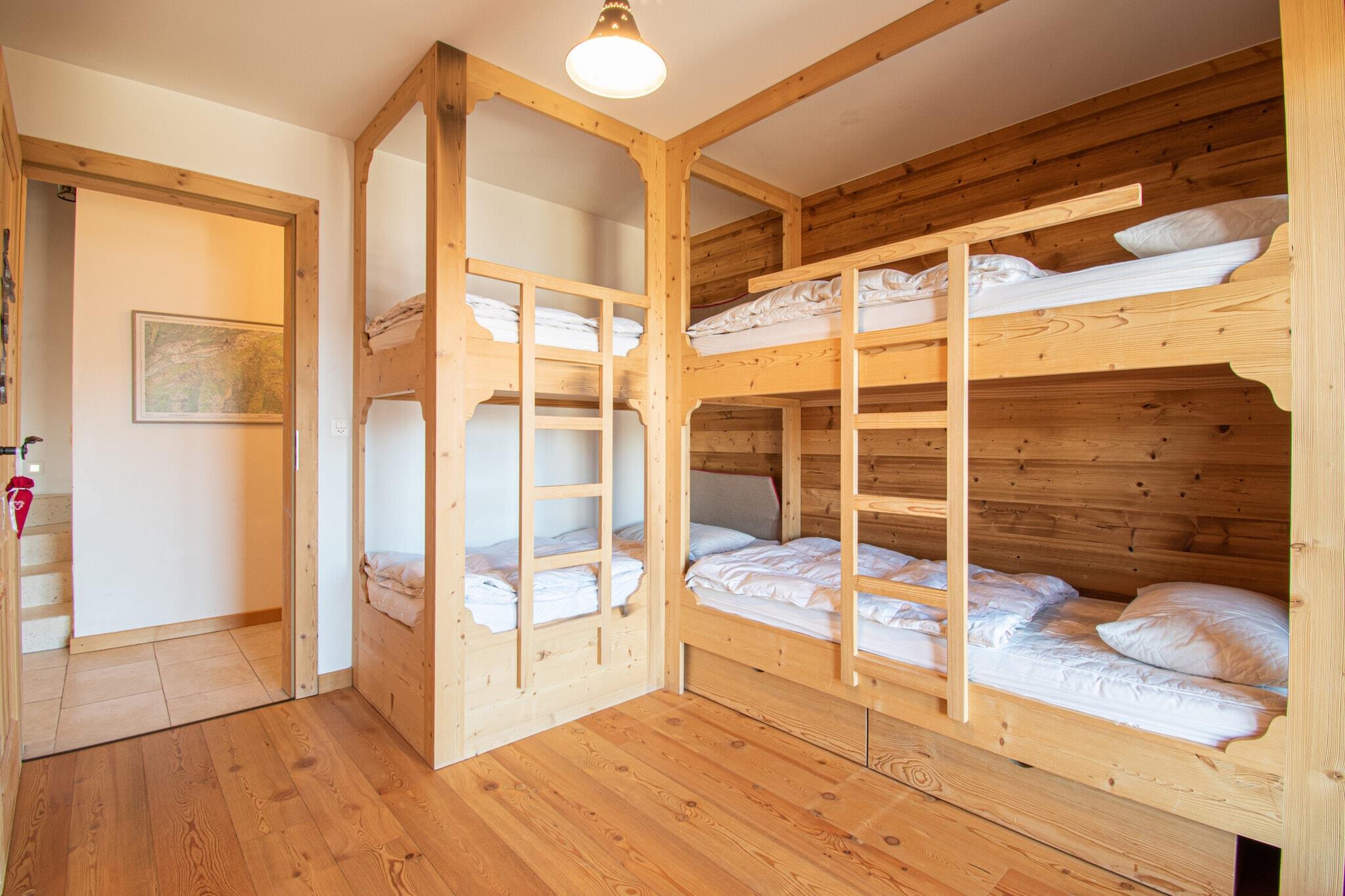 CHALET HIRONDELLE - JACUZZI & LUKSUS Bo i denne autentiske hytte i Veysonnaz, Schweiz, perfekt til familier. Plads til op til 12 gæster. FUNKTIONER • Faciliteter: Terrasse, pejs, have, udsigt over dalen, Jacuzzi • Størrelse: 170 m², 5-stjernet hytte DIN OVERNATNING • Opholdsstue: Rummelig stue og spisestue, fuldt udstyret åbent køkken, kabel-tv • Soveværelser: o Soveværelse 1: 2 køjesenge (90x200 cm) til 4 gæster o Soveværelse 2: Dobbeltseng (160x200 cm) o Soveværelse 3: Dobbeltseng (160x200 cm) o Soveværelse 4: Master med dobbeltseng (160x200 cm), sofa, skrivebord o Soveværelse 5: 2 enkeltsenge (90x200 cm) til børn • Badeværelser: 1 separat toilet, 1 brusebad, 1 badeværelse med bruser og badekar • Udvendig: Stor balkon, terrasse med jacuzzi (4 sæder), udsigt over dalen • Faciliteter: Vaskerum og skirum i stueetagen, garage til 1 bil BELIGGENHED • Ved siden af Mayens pist • Gondol: 1,4 km • Butikker og fritid: 2 km YDERLIGERE OMKOSTNINGER • Sengelinned og håndklæder • Slutrengøring • Turistskat • Depositum under opholdet frigives inden for en måned efter afrejse ALPVISIONSFORDELE • Adgang til offentlig swimmingpool (sommer/vinter) • Sun&Fun aktivitetsprogram (sommer) • Rabat på op til 50% på leje af udstyr VALGFRIE TJENESTER (ekstra gebyr) • Redde senge ved ankomsten, håndklæder og toiletartikler • Gourmetkurv, babyudstyr, sen udtjekning ALPVISION RESIDENCES Skaber autentiske ophold i de schweiziske og franske alper i over 20 år. Lad os hjælpe dig med at skabe uforglemmelige minder!
