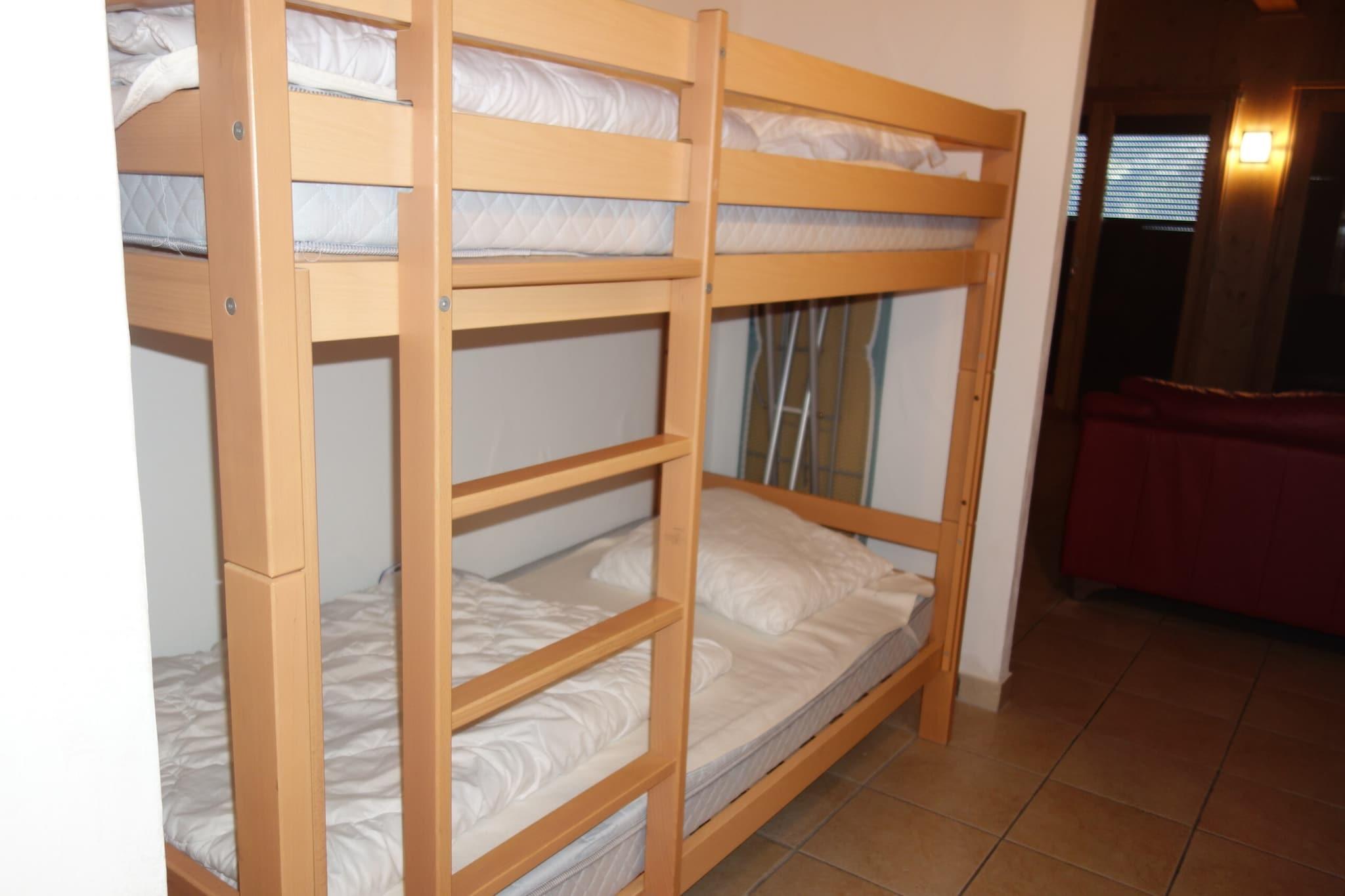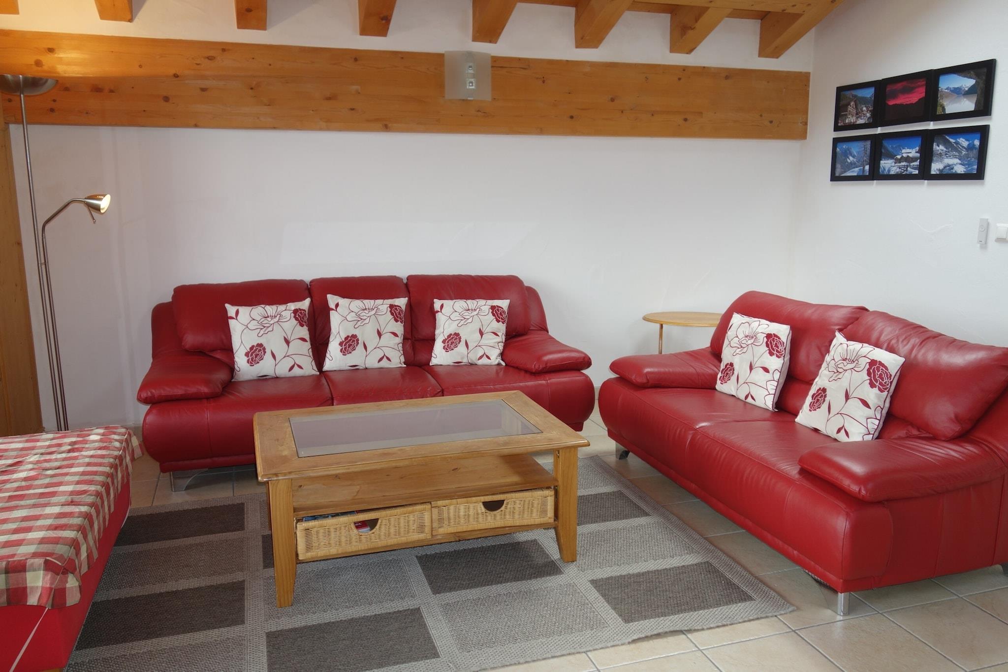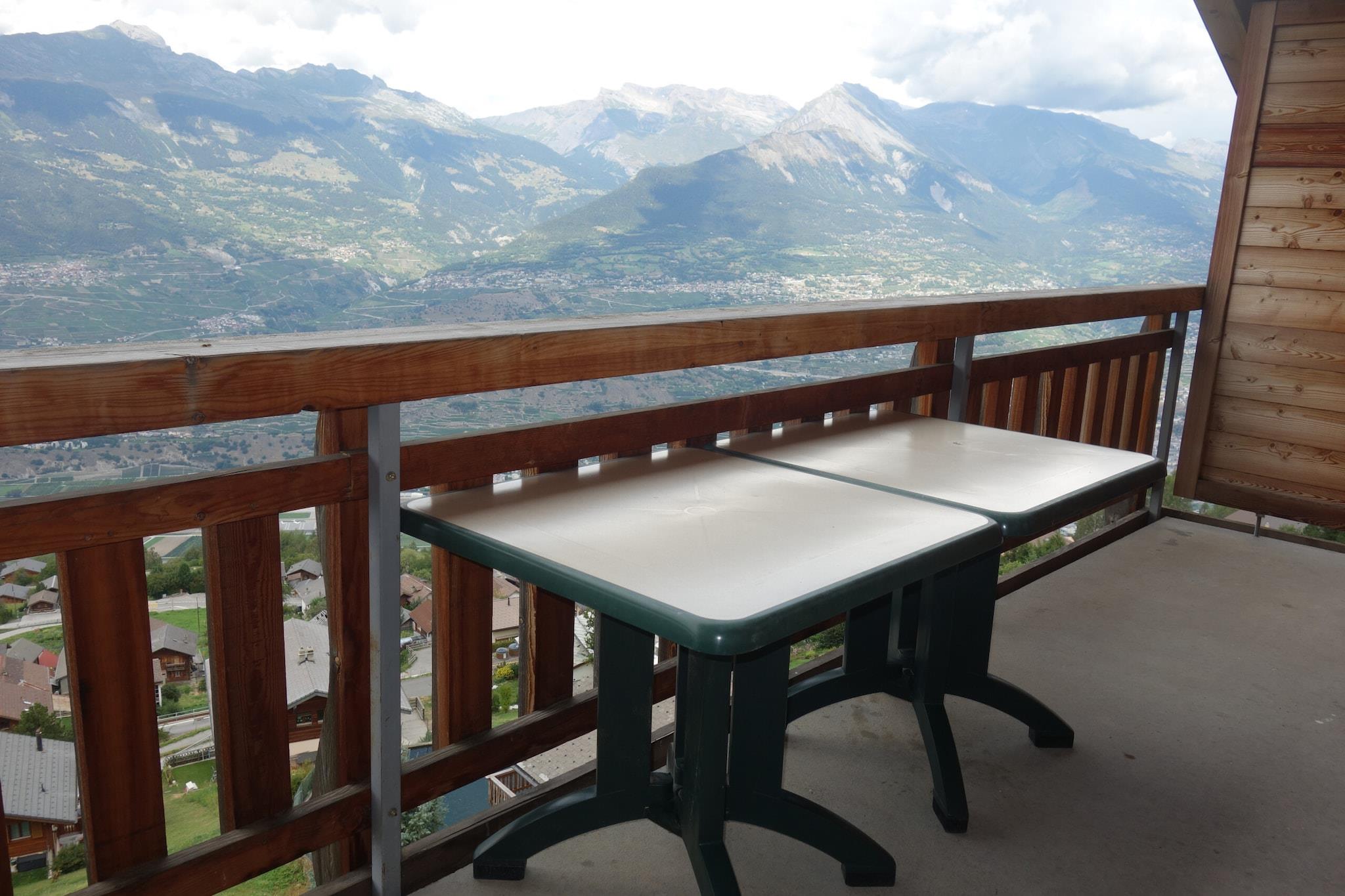 Velkommen til en hyggelig bjerglejlighed beliggende i hjertet af Veysonnaz, Schweiz, med plads til op til 6 gæster. Nyd en betagende udsigt over dalen og bjergene i denne charmerende lejlighed, perfekt til familier eller grupper. Denne 3-værelses, 3-stjernede plus lejlighed har en lys stue med en indbydende pejs, komfortabel sofa, tv og dvd-afspiller. Det åbne køkken er fuldt udstyret med en keramisk kogeplade, ovn, mikroovn, brødrister, filterkaffemaskine, elkedel og opvaskemaskine, hvilket gør madlavning til en fornøjelse. Sovearrangementer omfatter en køjeseng (90x200) i korridoren, to enkeltsenge (90x200) i soveværelse 1 og yderligere to enkeltsenge (90x200) i soveværelse 2. Lejligheden har to badeværelser: det ene støder op til bad og toilet, og en anden med bad og toilet. Træd udenfor til balkonen, møbleret med et udendørs bord og stole, og nyd panoramaudsigten over Rhône-dalen. Yderligere faciliteter inkluderer et vaskerum (digital betaling), et skirum og en indendørs parkeringsplads inkluderet i din leje. Kæledyr er ikke tilladt, og adgang er via elevator eller trapper. Beliggende kun 270 meter fra svævebanen, butikker og fritidsaktiviteter, er denne bolig ideelt beliggende til at udforske resortet. Ekstra omkostninger inkluderer en turistskat, depositum og valgfri tjenester såsom sengelinned, håndklæder, slutrengøring og komfortpakker for et glat ophold. Nyd gratis adgang til den offentlige swimmingpool, Sun&Fun-aktivitetsprogrammet om sommeren og rabat på leje af udstyr. Velkommen til dit alpine tilbagetog!