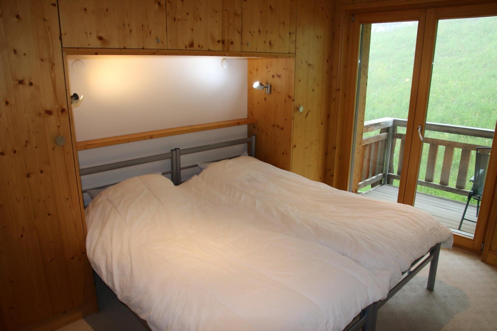 Oplev charmen ved det schweiziske bjergliv i den rummelige lejlighed, beliggende i hjertet af Veysonnaz, perfekt til familier eller vennegrupper. Med plads til op til 8 gæster tilbyder dette hyggelige tilflugtssted en fantastisk udsigt over Rhône-dalen og fungerer som en ideel base for dine alpine eventyr. Det indbydende opholdsrum har en lys stue med pejs, kabel-tv og dvd-afspiller, mens gratis WiFi holder dig forbundet. Det åbne køkken er fuldt udstyret med køleskab, ovn, mikroovn, brødrister, kaffemaskine, kedel og opvaskemaskine, hvilket gør madlavning til en leg. Lejligheden indeholder en korridor med en køjeseng og tre soveværelser, hver med to enkeltsenge, hvilket giver fleksibilitet og komfort. Med to badeværelser - et med badekar og et med bruser - er bekvemmelighed sikret for alle gæster. Nyd de udendørs balkoner, der er udstyret med siddepladser, mens du nyder den betagende udsigt over dalen. Yderligere faciliteter omfatter indendørs parkering til ét køretøj og skiopbevaring samt adgang til et fælles vaskerum (digital betaling). Centralt beliggende, er du kun 270 m fra svævebanen, butikker og restauranter. Forbedre dit ophold med eksklusive fordele såsom gratis adgang til den offentlige swimmingpool og Sun&Fun-aktivitetsprogrammet i højsommersæsonen sammen med rabatter på leje af udstyr gennem vores partnere. Valgfri tjenester, herunder opredte senge ved ankomst, gourmetkurve og babyudstyr, er også tilgængelige. Oplev magien i de schweiziske alper med Alpvision - dit hjem væk fra hjemmet venter!