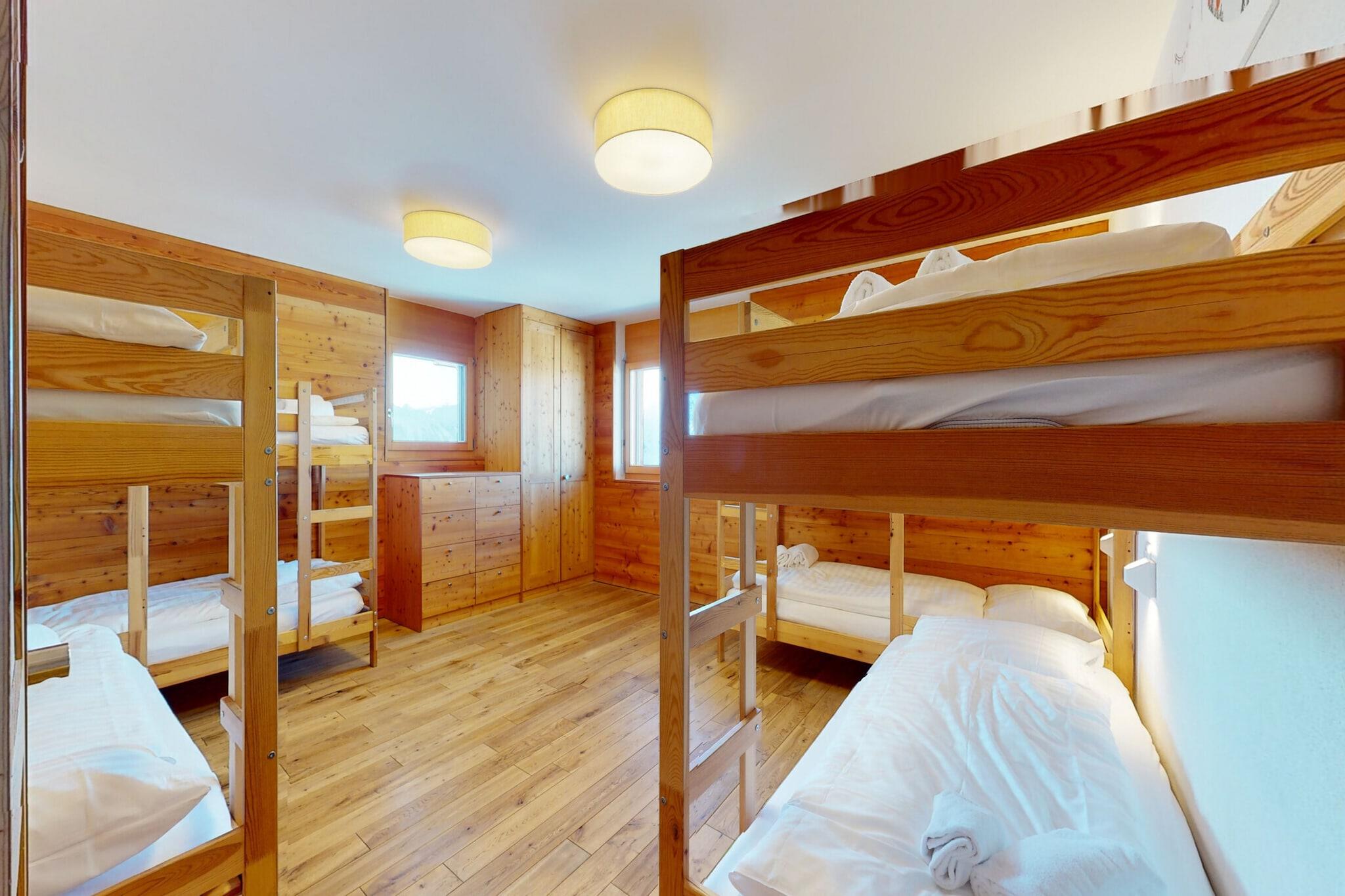 Flygt til dette luksuriøse og sofistikerede familievenlige tilflugtssted, der ligger i de schweiziske alper, og tilbyder et perfekt tilflugtssted for op til 16 gæster. Beliggende i Veysonnaz, er denne femstjernede hytte kun få skridt fra skiløjperne, hvilket gør den til en ideel base for skientusiaster. Hytten spænder over 200 kvadratmeter og har en rummelig stue med en dekorativ pejs, iPhone/iPod-station, Apple TV-boks til filmaftener og et Marshall wifi-stereo til streaming af musik. Spiseområdet har komfortabel plads til 12 personer, og det moderne køkken er fuldt udstyret med stort køleskab, mikroovn, ovn, keramiske kogeplader, kaffemaskine, opvaskemaskine og meget mere. Indkvarteringen omfatter fem soveværelser med fleksible konfigurationer, der passer til familier eller grupper. De store soveværelser har hver en dobbeltseng, og værelset i sovesal har fire køjesenge til op til otte personer. En mezzanin tilbyder ekstra siddepladser med et stort tv. Hytten indeholder fire badeværelser, hvoraf to er en-suite, med bruser-badekar-kombinationer og en sauna. Udenfor kan du nyde en solrig balkon med udsigt over dalen, og slappe af i den udendørs jacuzzi efter en dag på pisterne. Yderligere faciliteter omfatter et skirum til opbevaring af udstyr, et vaskerum med vaskemaskine og tørretumbler og parkering for op til fire biler, inklusive en lukket garage til én. Denne fuldt udstyrede hytte sikrer et luksuriøst ophold i rolige omgivelser med nem adgang til resortets gondol, butikker og fritidsfaciliteter. Denne hytte er ideel til store familier eller grupper og tilbyder en mindeværdig ferieoplevelse i hjertet af de schweiziske alper .