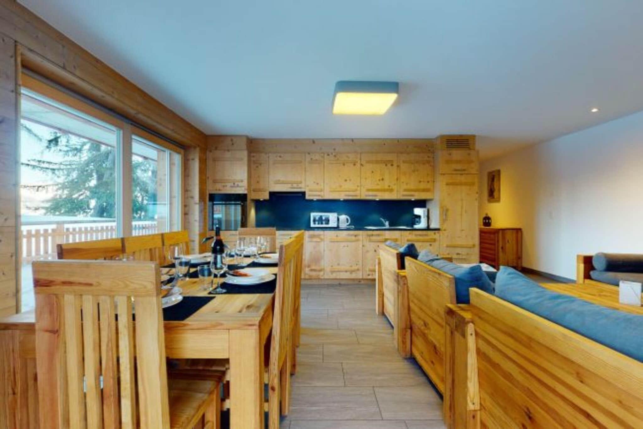 Denne charmerende lejlighed er designet til komfort og kan rumme op til 8 gæster midt i det fredfyldte bjerglandskab i Veysonnaz. Med tre soveværelser med hver to enkeltsenge og en rummelig stue med en sovesofa er dette 125 m² store retræte perfekt til familier eller små grupper. Gæsterne kan nyde en stor terrasse med en fantastisk udsigt over pisterne sammen med faciliteter som Wi-Fi og et fladskærms-tv. Selvom kæledyr ikke er tilladt, kan gæsterne vælge yderligere tjenester såsom sengetøj og håndklæder for et problemfrit ophold. Gratis adgang til en offentlig swimmingpool og sæsonbestemte aktiviteter er inkluderet, hvilket forbedrer din ferieoplevelse. Beliggende direkte på Veysonnaz-skibakken tilbyder denne lejlighed ski-in/ski-out-adgang, hvilket sikrer ubesværede overgange mellem pisterne og din bolig. Den nærmeste svævebane ligger kun 150 meter væk, med indkøbs- og fritidsfaciliteter inden for en radius på 700 meter. For dem, der rejser med fly eller tog, gør nærheden til lokale transportknudepunkter det nemt at nå denne smukke alpine destination. De fredelige omgivelser er ideelle til at udforske adskillige vandrestier og nyde naturen. Det fuldt udstyrede åbne køkken indeholder moderne apparater såsom en keramisk kogeplade, ovn, mikroovn og opvaskemaskine, hvilket giver mulighed for praktisk tilberedning af måltider. De to badeværelser har en kombination af et brusebad og et separat toilet, der tilgodeser større gruppers behov. Yderligere faciliteter omfatter et skirum til opbevaring af udstyr og vaskefaciliteter til rådighed på stedet mod et gebyr. Elevatorer giver nem adgang til lejligheden, hvilket sikrer et behageligt ophold i denne velindrettede bjergferie.