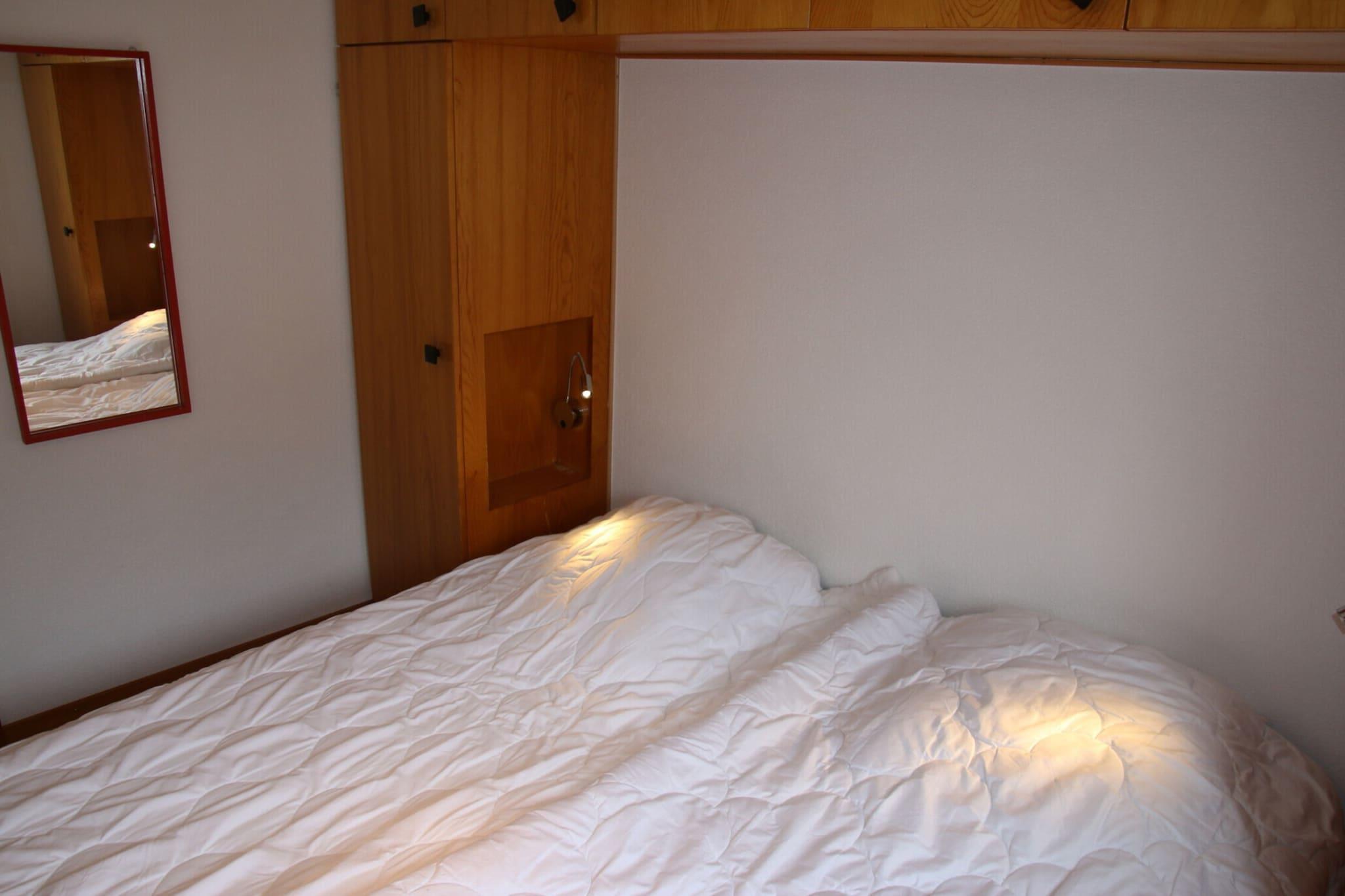 På 3. etage: (gang(køjeseng(90 x 200 cm)), Stue(dobbeltsovesofa(140 x 200 cm), Fjernsyn(kabel, parabol), pejs, DVD-afspiller, radio), åbent køkken(spisebord, kogeplade(Komfur med tre kogeplader), elkedel, brødrister, kaffemaskine, ovn, mikrobølgeovn, køle-fryseskab, ()), soveværelse(enkeltseng(90 x 200 cm), enkeltseng(90 x 200 cm)), badeværelse(bruser, toilet)) skiopbevaring, tørretumbler, vaskemaskine, balkon, varme(central), havemøbler, swimmingpool(deles med andre gæster), elevator, Vaskeripakke inkl.