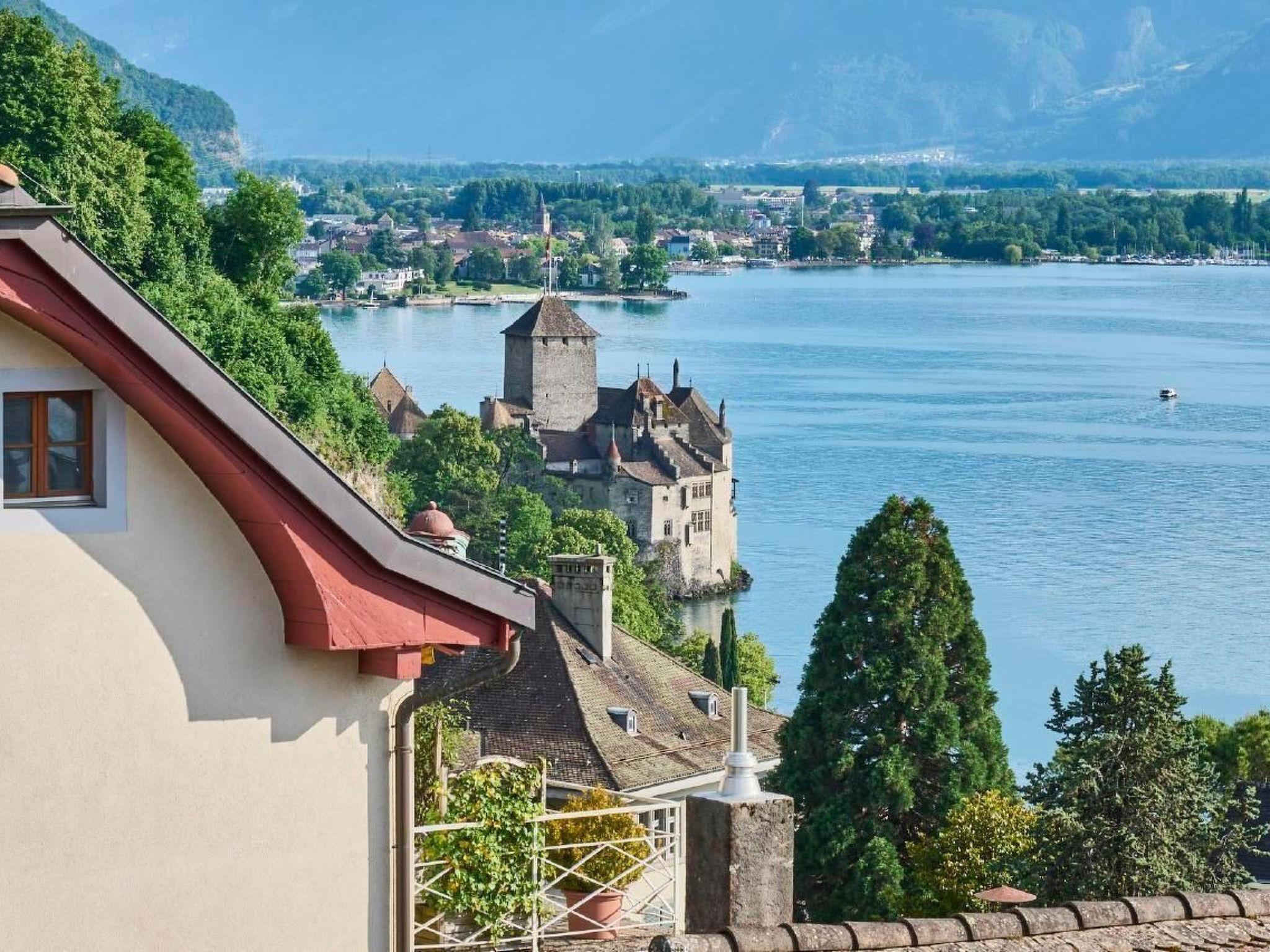Public transport: Every 10 minutes: Bus 201 from Montreux or Villeneuve, bus stop "Bonivard". Walk up Rue Bonivard to the 1st square with a fountain. Once an hour: S3 train from Montreux or Villeneuve, "Veytaux-Chillon" stop. Walk up the Rue du They to the 1st square with a fountain.