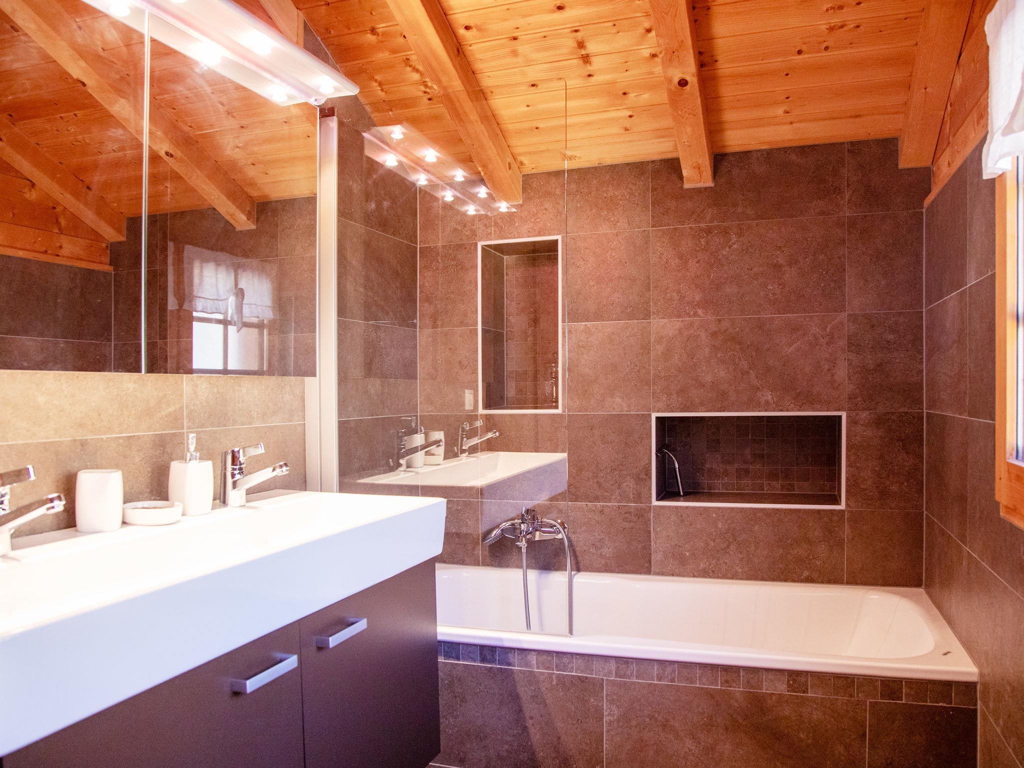"Chalet Nirvana", 7-room chalet 200 m2 on 3 levels, south facing position. Object suitable for 6 adults + 2 children. Very comfortable and tasteful furnishings: living/dining room with open-hearth fireplace, dining table and TV (flat screen). Exit to the balcony. Lounge. Open kitchen (oven, dishwasher, 6 induction hot plates, toaster, kettle, freezer, electric coffee machine, Capsules for coffee machine (Nespresso) extra, steamer, raclette grill). Shower/WC. On the lower ground floor: lounge with TV (flat screen). Exit to the garden, south facing position. 1 room, without wardrobe with 1 double bed (1 x 160 cm). Exit to the garden, south facing position. Shower/WC. Upper floor: 1 room with 1 double bed (1 x 180 cm). Exit to the balcony, south facing position. 1 children's room with 2 beds (90 cm, length 190 cm). 1 room with 1 french bed (1 x 160 cm). Exit to the balcony, south facing position. Bath/WC. Large balcony, south facing position, small balcony, south facing position, large, garden, south facing position. Balcony furniture, barbecue, deck chairs. Very beautiful view of the mountains. Facilities: washing machine, dryer, hair dryer. Internet (WiFi, free). Parking, garage (1 car). E-charging station. Please note: non-smoking house.