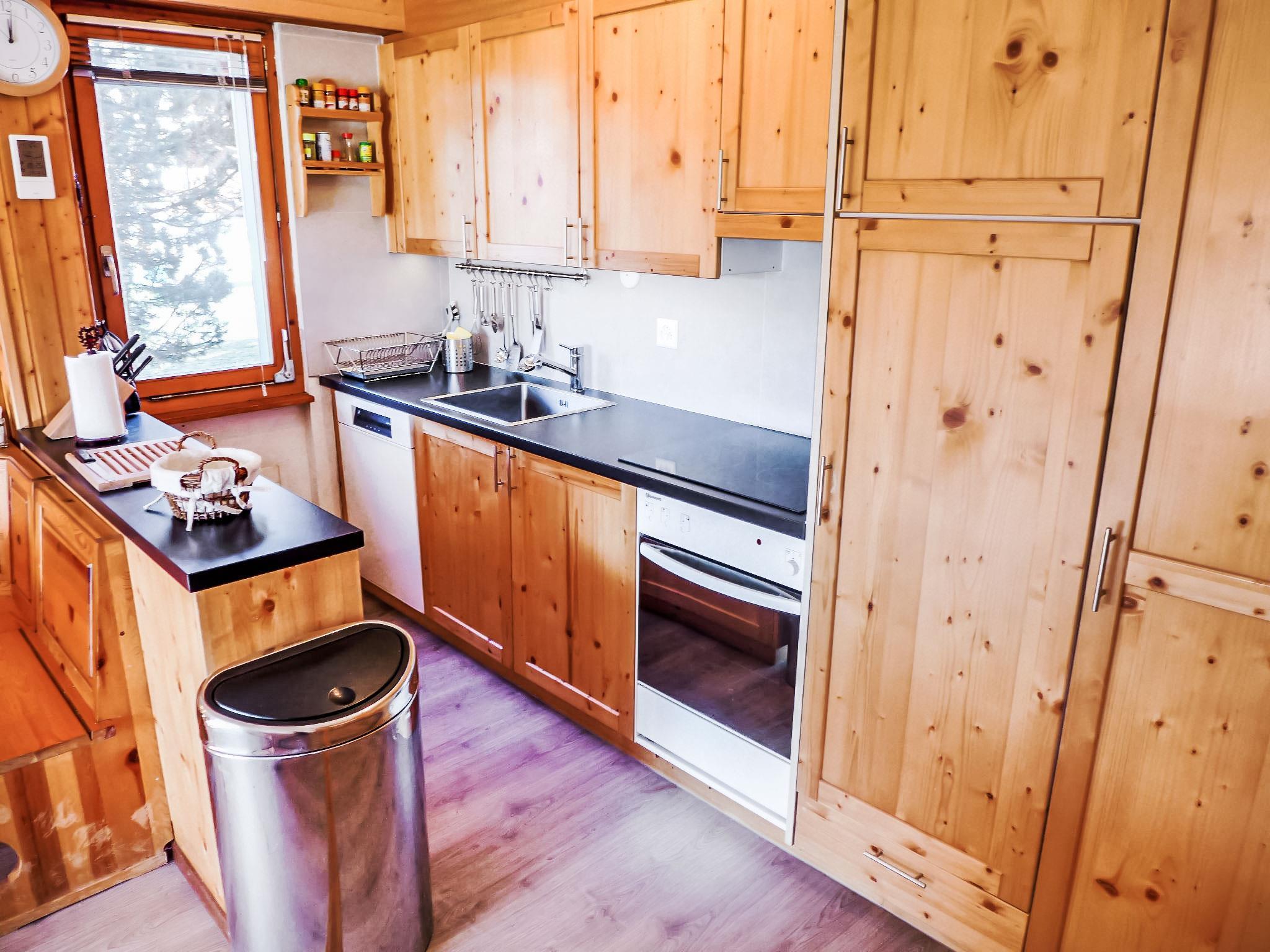"Diamant 1", 3-room apartment 70 m2, on the ground floor, south facing position. Renovated in 2016, comfortable and beautiful furnishings: living/dining room with dining table and TV (flat screen), DVD. Exit to the garden, south facing position. 1 children's room with 2 x 2 bunk beds. 1 room with 2 beds (90 cm, length 200 cm). Open kitchen (oven, dishwasher, 4 ceramic glass hob hotplates, toaster, kettle, electric coffee machine, Capsules for coffee machine (Nespresso), raclette grill, fondue Set (cheese)). Bath/WC, sep. WC, double hand-basin. Terrace 10 m2. Beautiful panoramic view of the mountains. Facilities: hair dryer. Internet (WiFi, free). Garage space n 12. Maximum 2 pets/ dogs allowed.