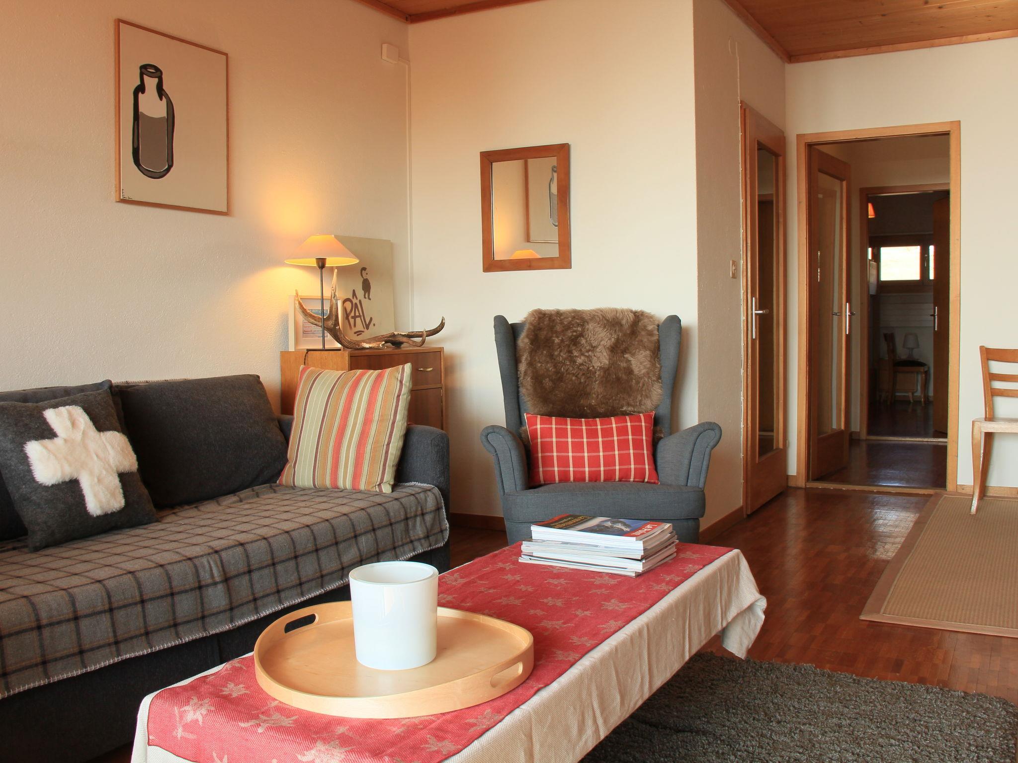 "La Bercière 21", 3-room apartment 70 m2 on 2nd floor. Practical furnishings: living/dining room with dining table and TV (flat screen). Exit to the balcony, south facing position. 1 room with 2 x 2 bunk beds (90 cm). 1 double bedroom with 1 french bed (150 cm). Small kitchen (oven, dishwasher, 4 ceramic glass hob hotplates, toaster, kettle, microwave, electric coffee machine, Capsules for coffee machine (Nespresso) extra, raclette grill). Bath/shower/WC. Balcony, south facing position. Balcony furniture, deck chairs (2). Very beautiful panoramic view of the mountains and the valley. Facilities: hair dryer. Internet (WiFi, free). Garage space n 5.
