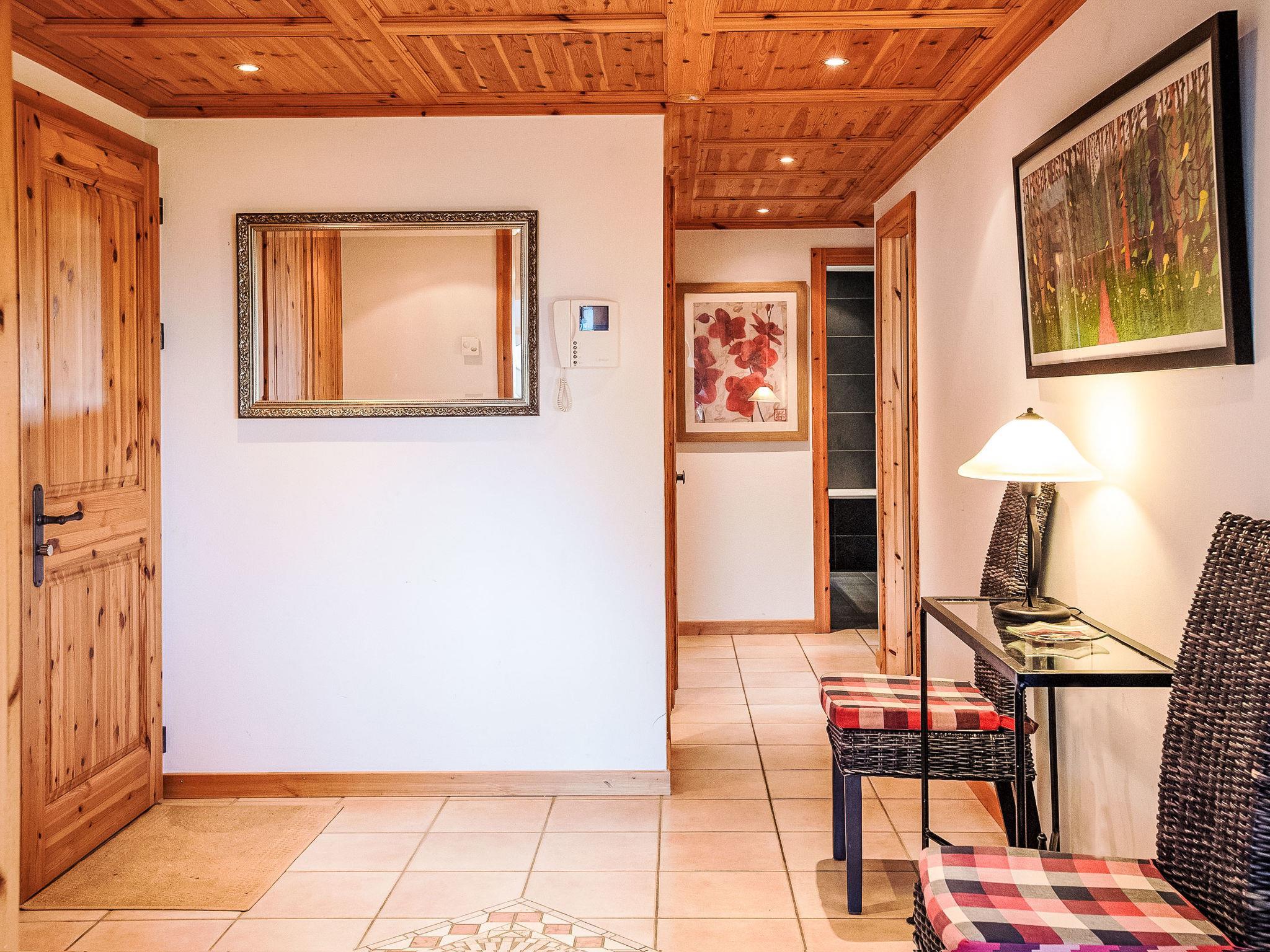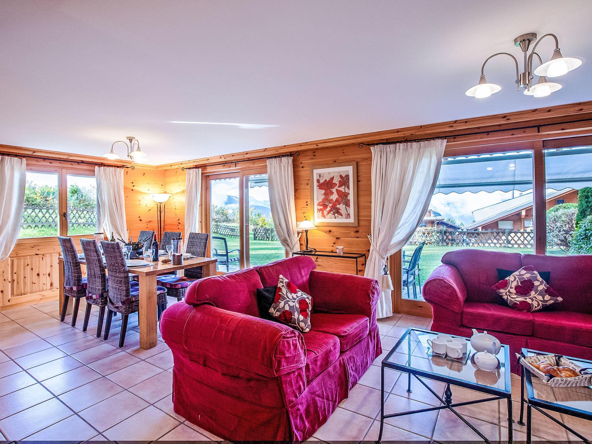"Ambre 4", 4-room apartment 98 m2 on 1st floor, south facing position. Comfortable and tasteful furnishings: living/dining room with open-hearth fireplace, dining table and TV (flat screen). Exit to the garden, south facing position. 1 room with 2 beds (90 cm, length 200 cm). Exit to the garden, east facing position. 1 room with 2 beds (90 cm, length 200 cm). Exit to the patio, north facing position. 1 room with 2 x 1 bunk beds (90 cm, length 200 cm). Open kitchen (oven, dishwasher, 4 ceramic glass hob hotplates, toaster, kettle, microwave, electric coffee machine, raclette grill, fondue Set (cheese)). Exit to the garden, east facing position. Bath/WC, shower/WC, double hand-basin. Small patio, north facing position, large garden, south facing position and, east facing position. Terrace furniture, barbecue. Very beautiful view of the mountains. Facilities: children's high chair, hair dryer. Internet (WiFi, free). Garage space n 22 (1 car). Please note: non-smokers only.