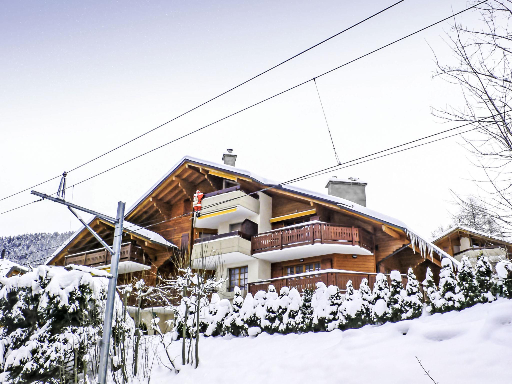 "Le Miclivier B1", 5-room maisonette 120 m2, on the ground floor. Bright, practical and comfortable furnishings: living/dining room 58 m2 with open-hearth fireplace, dining table and TV. Exit to the garden. 1 room with 2 beds (90 cm), bath/WC. Exit to the garden, south facing position. 1 room with 2 beds (90 cm, length 200 cm). Open kitchen (oven, dishwasher, 4 ceramic glass hob hotplates, toaster, kettle, microwave, freezer, electric coffee machine, Capsules for coffee machine (Nespresso) extra, raclette grill, fondue Set (cheese)). Shower/WC. On the lower ground floor: (spiral staircase), 1 small room, without wardrobe with 2 beds (90 cm, length 190 cm). 1 small room, without wardrobe with 2 beds (90 cm). Large terrace 36 m2, garden. Terrace furniture, barbecue. Beautiful view of the mountains. Facilities: iron, baby cot, hair dryer. Internet (WiFi, free). Garage space n B1. Please note: non-smokers only.