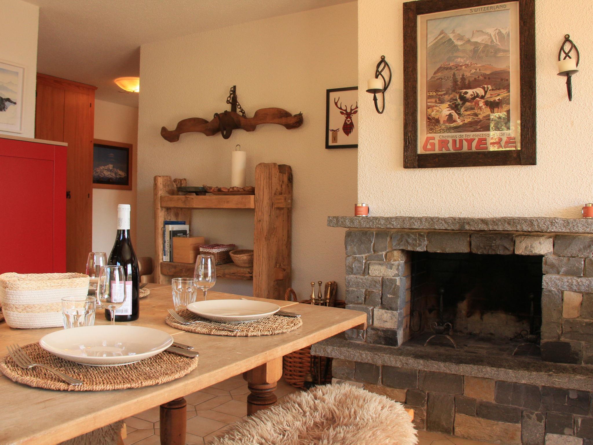 "Armorial II / apt 2", 3-room apartment 71 m2, on the ground floor. Partly renovated in 2017, comfortable and beautiful furnishings: living/dining room with open-hearth fireplace, satellite TV, radio and DVD. Exit to the garden, to the terrace. 1 room with 2 beds and bath/WC. 1 room with 1 french bed and open-hearth fireplace (only for decoration), shower/WC. Exit to the garden, to the terrace. Open kitchen (oven, dishwasher, 4 ceramic glass hob hotplates, freezer, raclette grill, fondue Set (cheese)). Large garden 100 m2, south facing position and west facing position. Terrace furniture. Very beautiful view of the mountains. Facilities: Internet (WiFi, free). Garage space n Apt 2. Please note: non-smokers only.