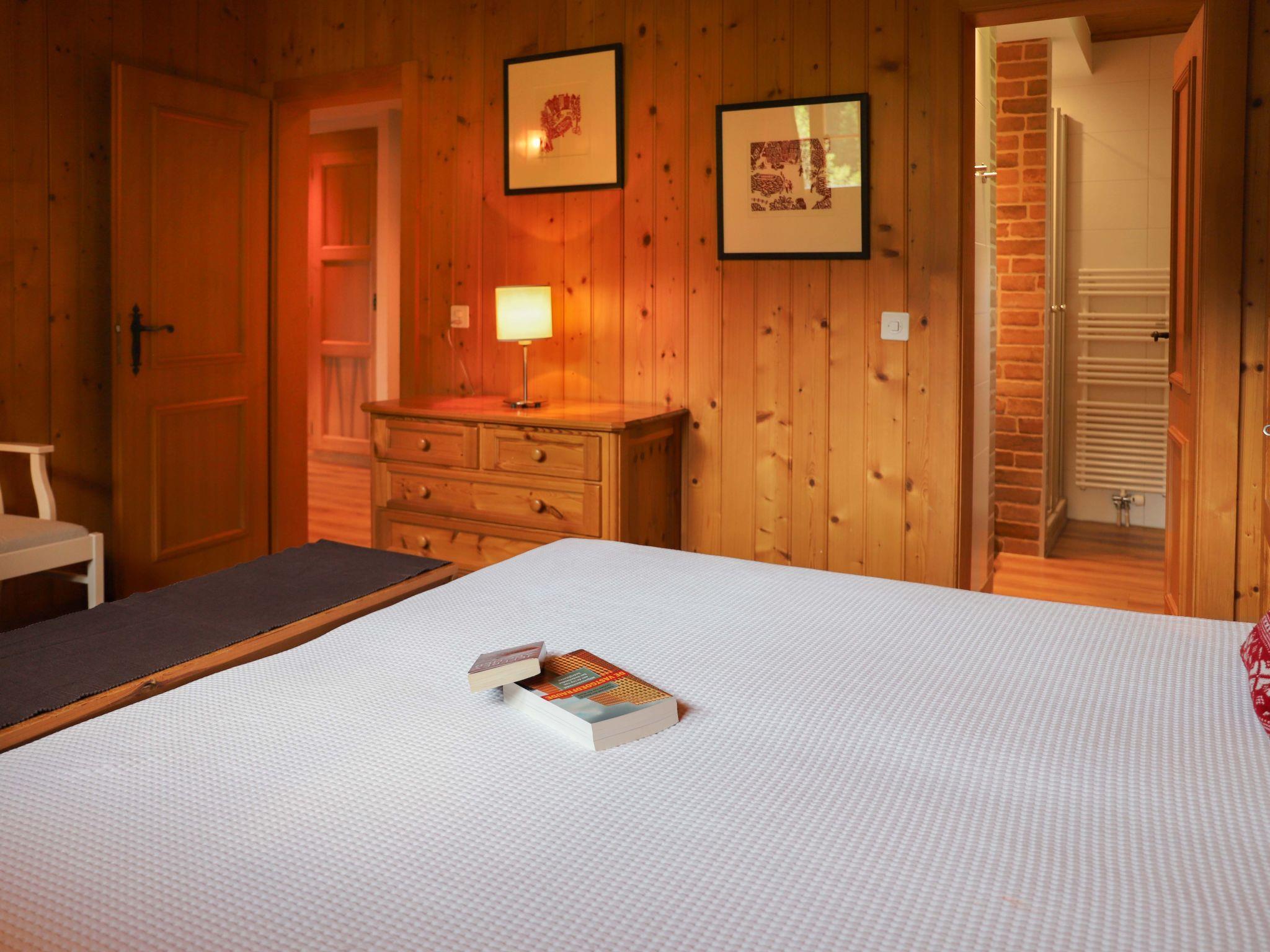 "Argentière 8", 4-room penthouse 95 m2 on 2 levels on 2nd floor, south facing position. Spacious, fully renovated in 2016, beautiful and cosy furnishings: living/dining room with sloping ceilings with open-hearth fireplace (only for decoration), TV (flat screen), hi-fi system and DVD. Exit to the balcony, south facing position. 1 room with 1 french bed (2 x 90 cm), bath/shower/WC. 1 room with 2 beds (90 cm). Exit to the balcony. 1 small room with 2 beds (90 cm). Open kitchen (oven, dishwasher, 4 ceramic glass hob hotplates, toaster, kettle, microwave, freezer, electric coffee machine, raclette grill, fondue Set (cheese)). Shower/WC. Upper floor: (ladder), 1 open room with sloping ceilings, ceiling height 100 - 210 cm with 2 beds (90 cm). Balcony, south facing position. Balcony furniture. Marvellous panoramic view of the mountains and the valley. Facilities: hair dryer. Internet (WiFi, free). IPod docking station. Garage space n 8. Please note: no lift.