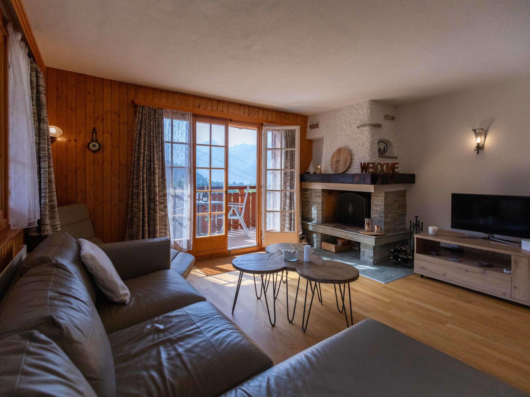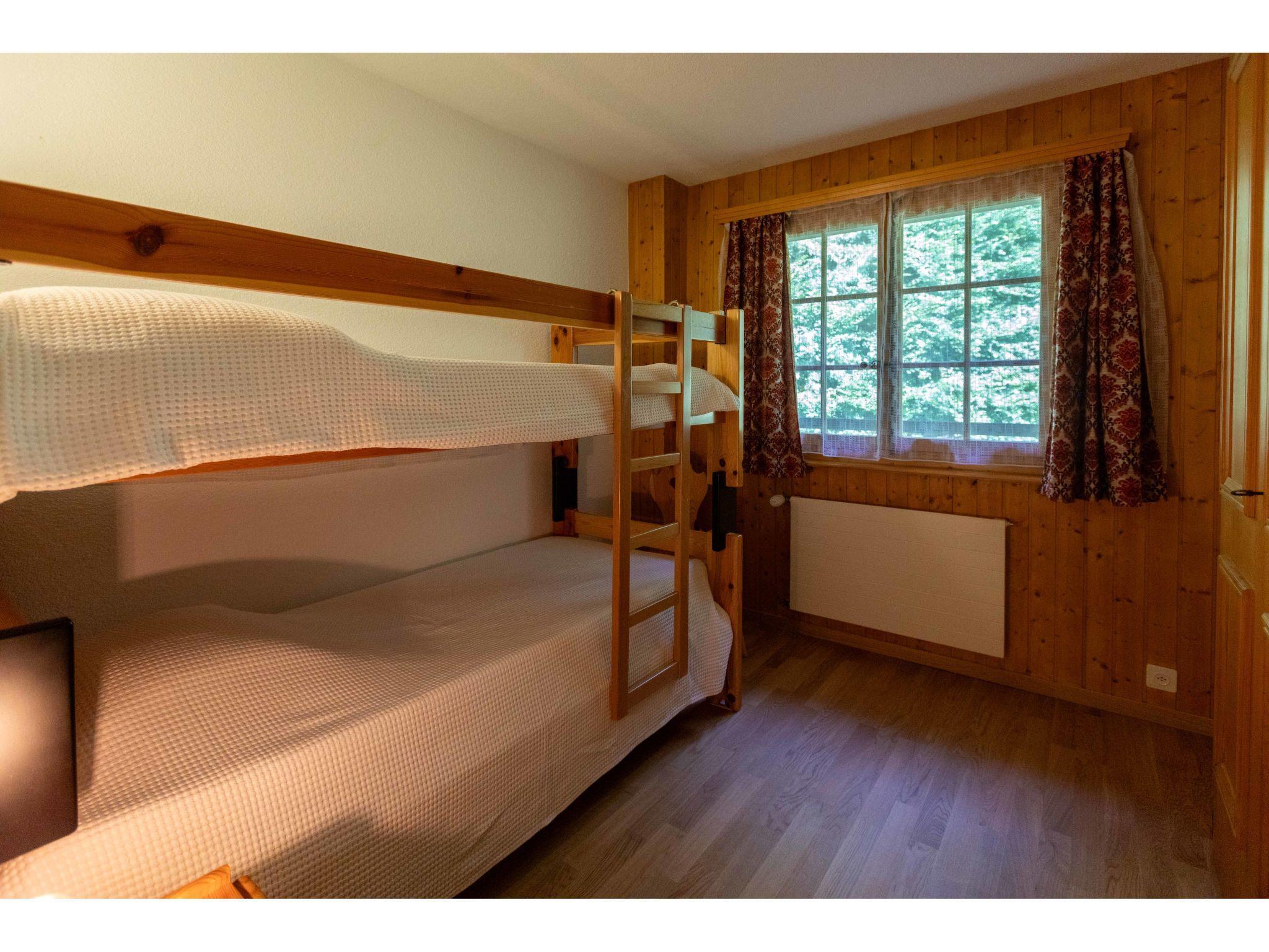 "Vermont 8", 3-room apartment 55 m2 on 2nd floor. Object suitable for 2 adults + 2 children. Practical and comfortable furnishings: living/dining room with open-hearth fireplace and satellite TV. Exit to the balcony, south facing position. 1 room with 2 beds (90 cm, length 200 cm). 1 children's room with 1 x 2 bunk beds (90 cm, length 200 cm). Small kitchen (4 hot plates, oven, dishwasher, Gas stove, toaster, electric coffee machine, Capsules for coffee machine (Dolce Gusto) extra, raclette grill, fondue Set (chinoise, cheese)). Bath/bidet/WC, sep. WC. Large balcony. Balcony furniture. Very beautiful view of the mountains, the ski run and the countryside. Facilities: hair dryer. Internet (WiFi, extra). Parking at the house. Please note: non-smokers only. Maximum 1 small pet/ dog allowed.