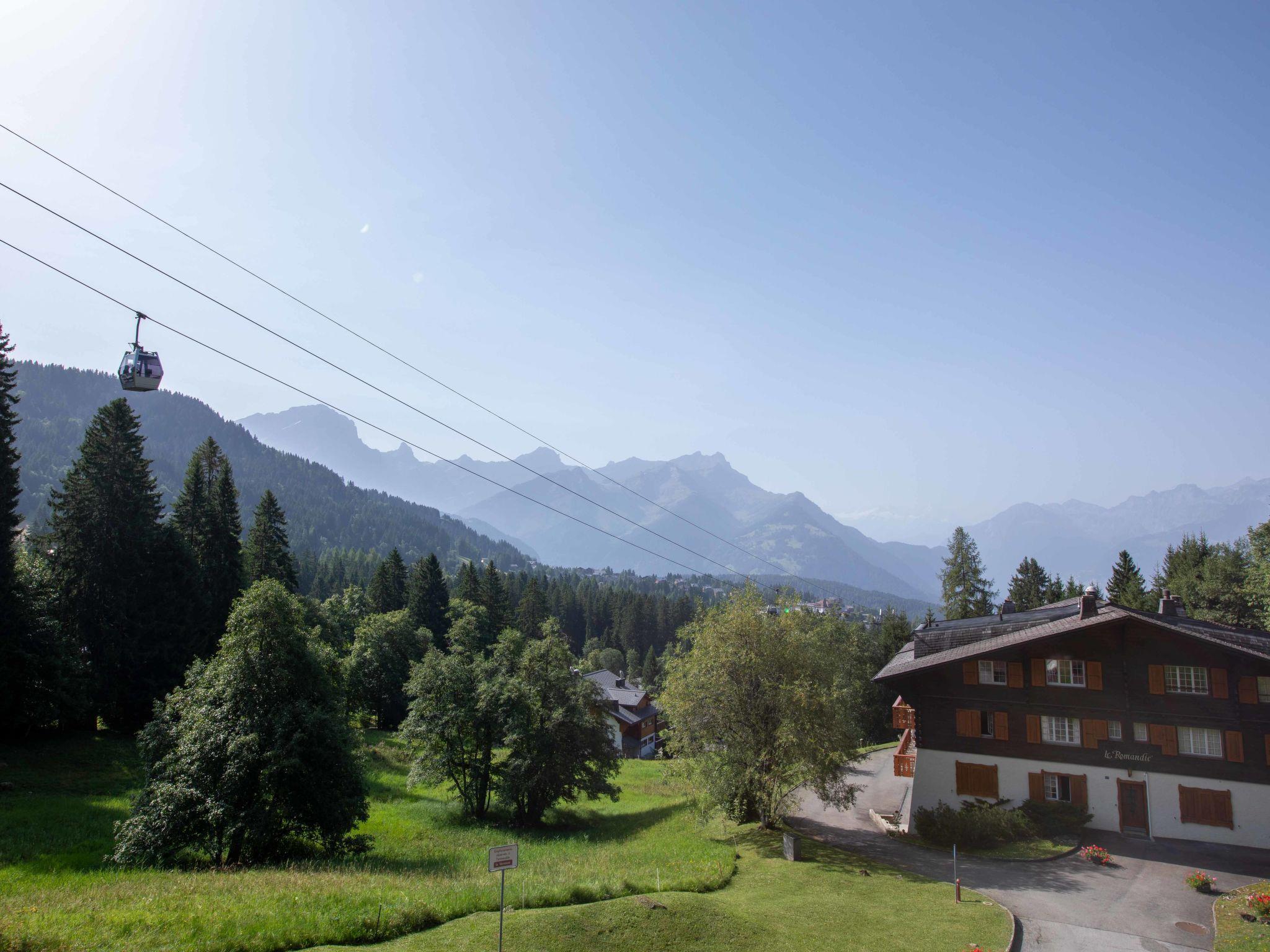 Cosy chalet "Vermont". Above Villars, La Résidence, in a quiet, sunny position, 300 m from the skiing area, in the countryside, south facing position. In the house: storage room for skis, central heating system, washing machine, tumble dryer (for shared use). Room cleaning weekly on request (extra). Motor access to the house. In Winter: please take snow chains. Stepped path (15 steps) to the house. Communal covered parking. Shop 2.5 km, grocery 1.2 km, restaurant 2.5 km, bus stop 1.8 km, railway station "Villars-Bretaye" 2.9 km, indoor swimming pool 2.5 km. Golf course (18 hole) 8 km, indoor tennis centre 3 km, sports centre 3 km, mountain railway 2.9 km, ski lift 2.4 km, gondola lift 1.4 km, ski bus stop 1.4 km, ski school 2.8 km, children's ski school 3 km, ice rink 2.5 km. Please note: car recommended, no lift. Free ski bus service to the ski region Villars.